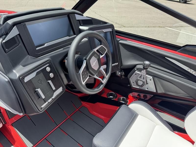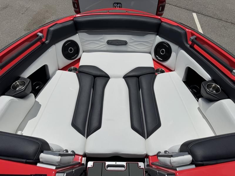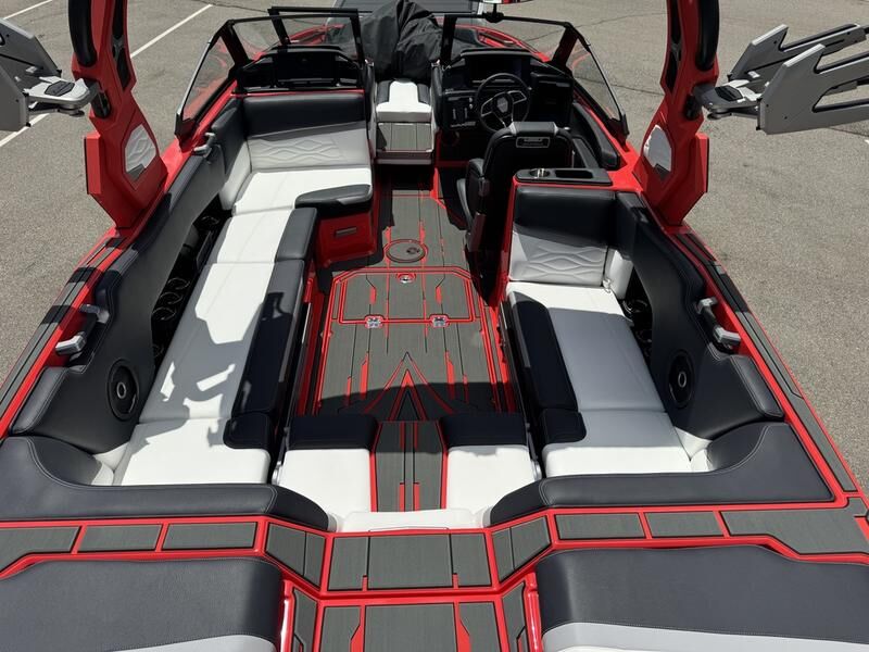Supra SL 575 with Supercharged Raptor engine. This boat looks abosolutely amazing on the outside and inside! This boat comes with DSD sound system, tower speakers, chill tech vinyl, Swellsurf system, surf exhaust pipe, tandem axle Boatmate trailer.