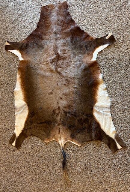 VenmoA Blue Wildebeest and Blesbok hide for sale. These are large hides in excellent quality and condition. The Blue Wildebeest hide is approximately 4'x6.5' (not including the tail). The Blesbok hide is 3'x4.5' (not including the tail). They can be used as furniture covers, wall hangings, or floor coverings. The Blue Wildebest is $495. The Blesbok is $150. I'll sell both for $600.