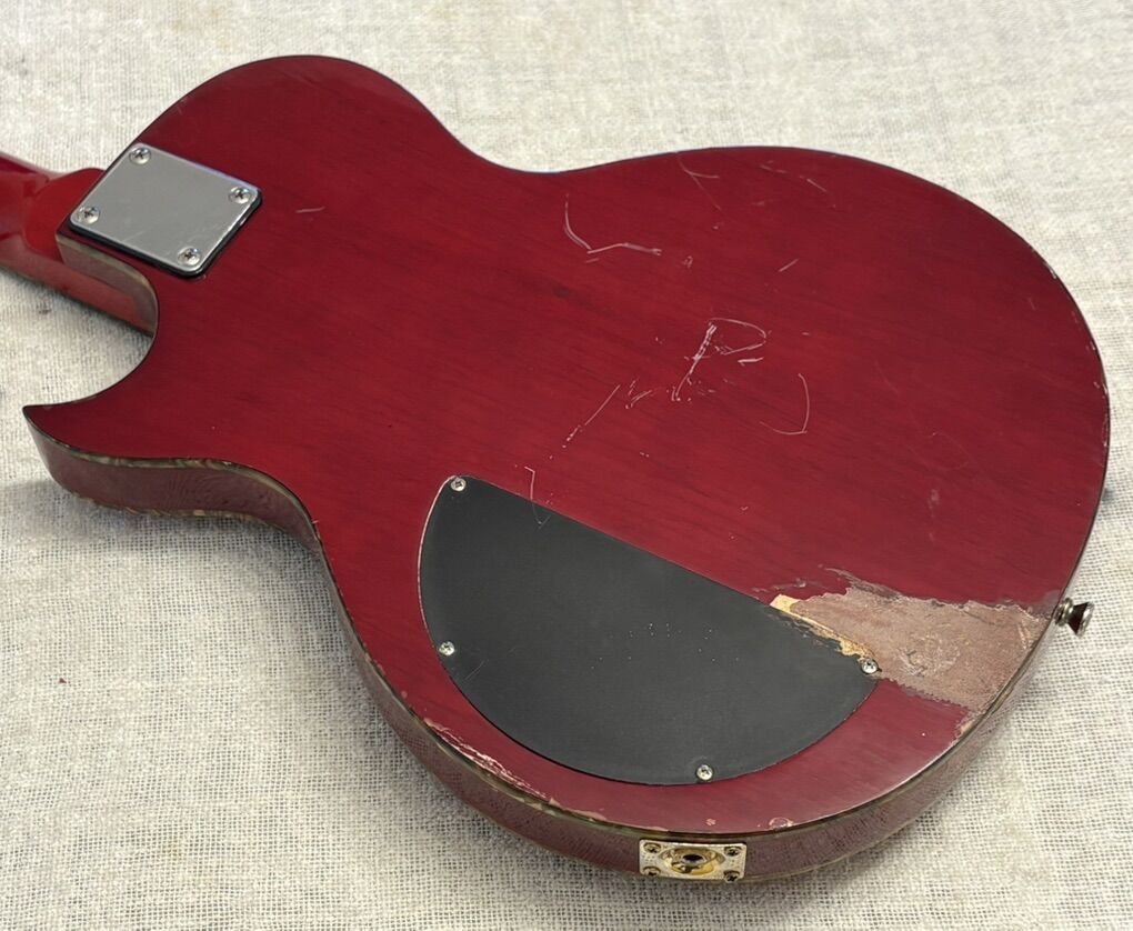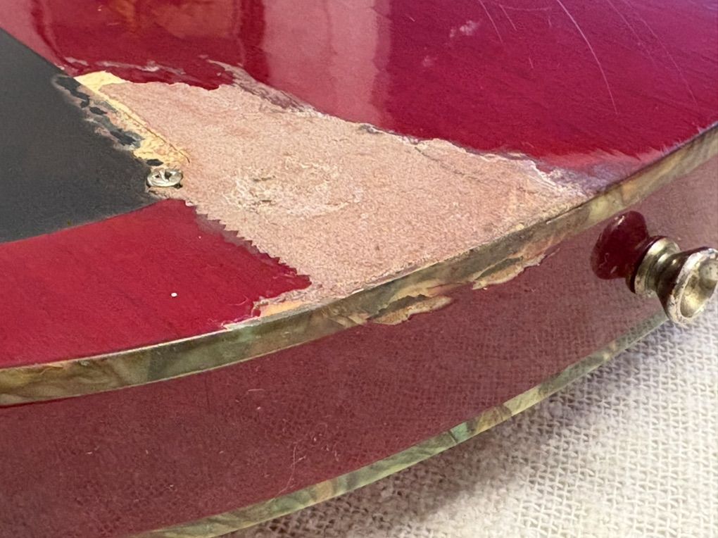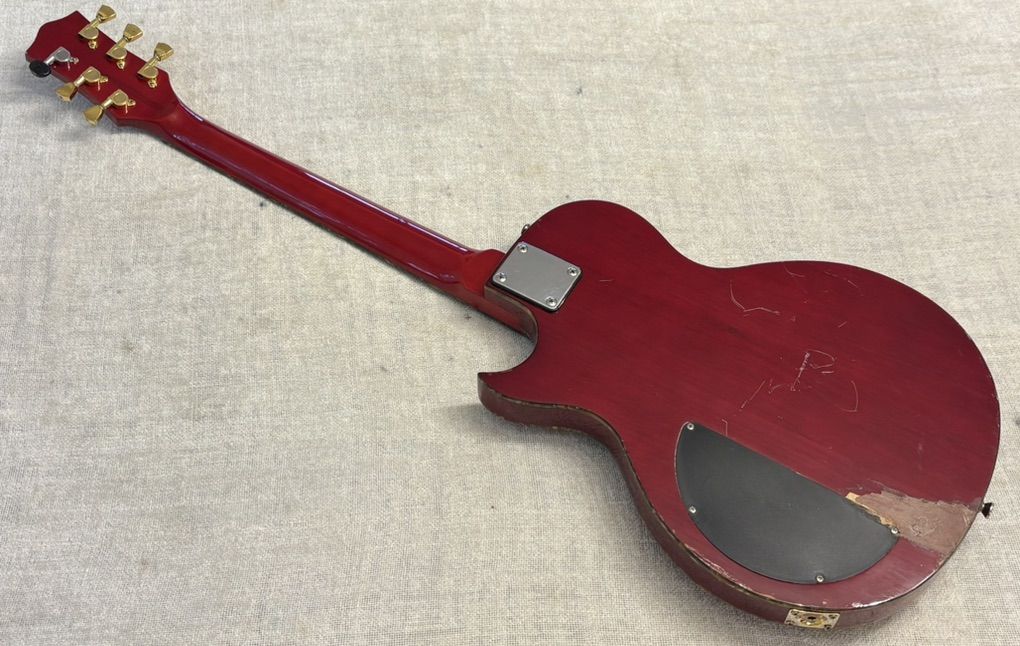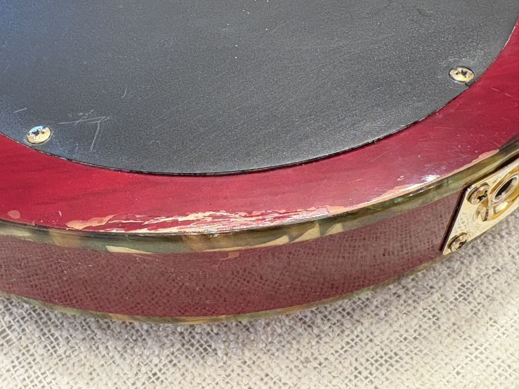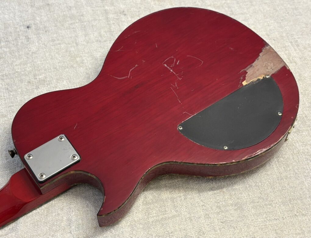 Fresh set of 10 gauge strings. All electronics work. One tuner not original. Missing truss rod cover. Front and top look great. Back has some scratches and some bare wood.