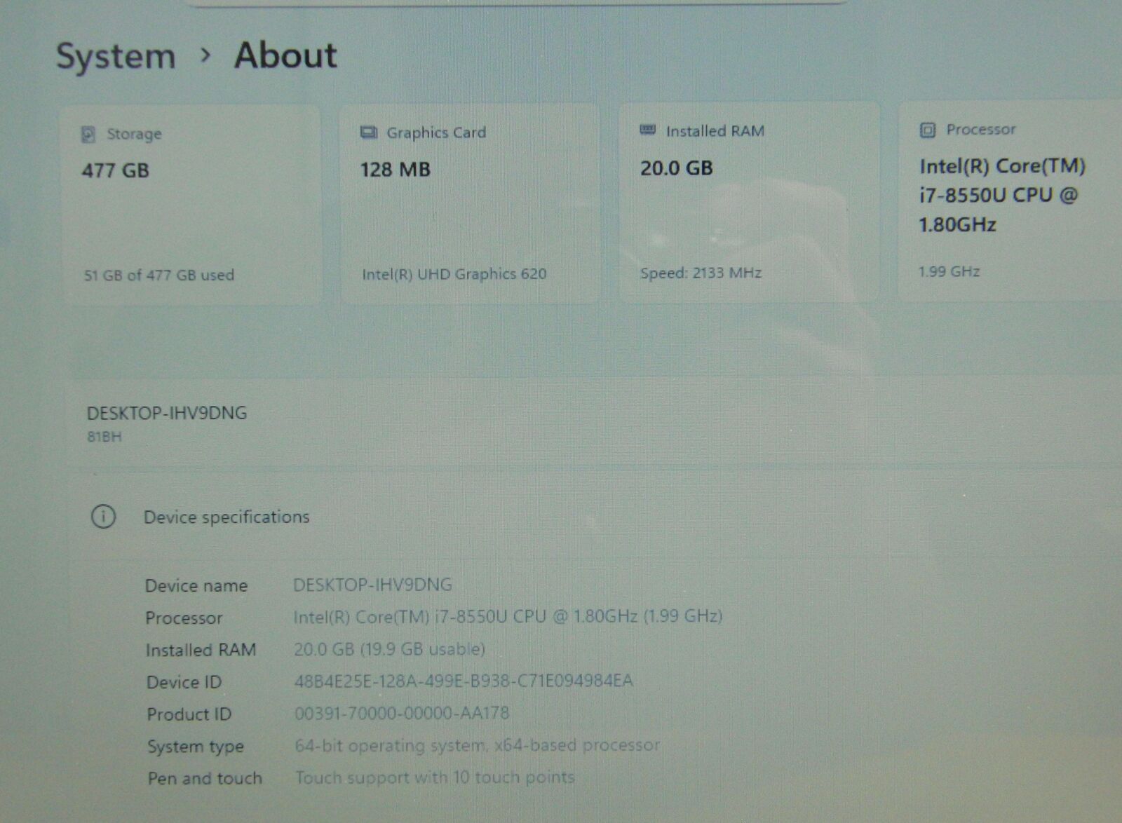 · Intel i7-8550u 1.8GHz / 4.0GHz Turbo