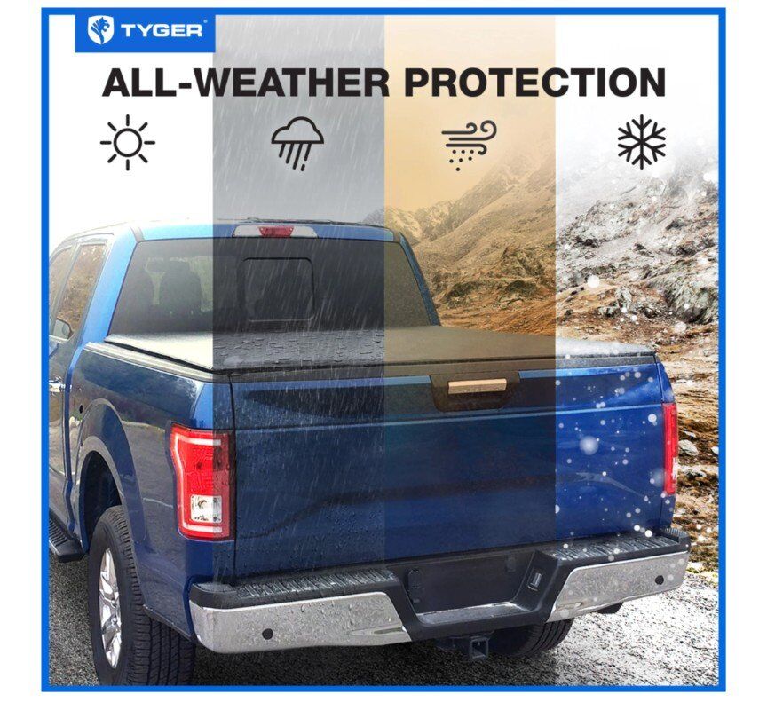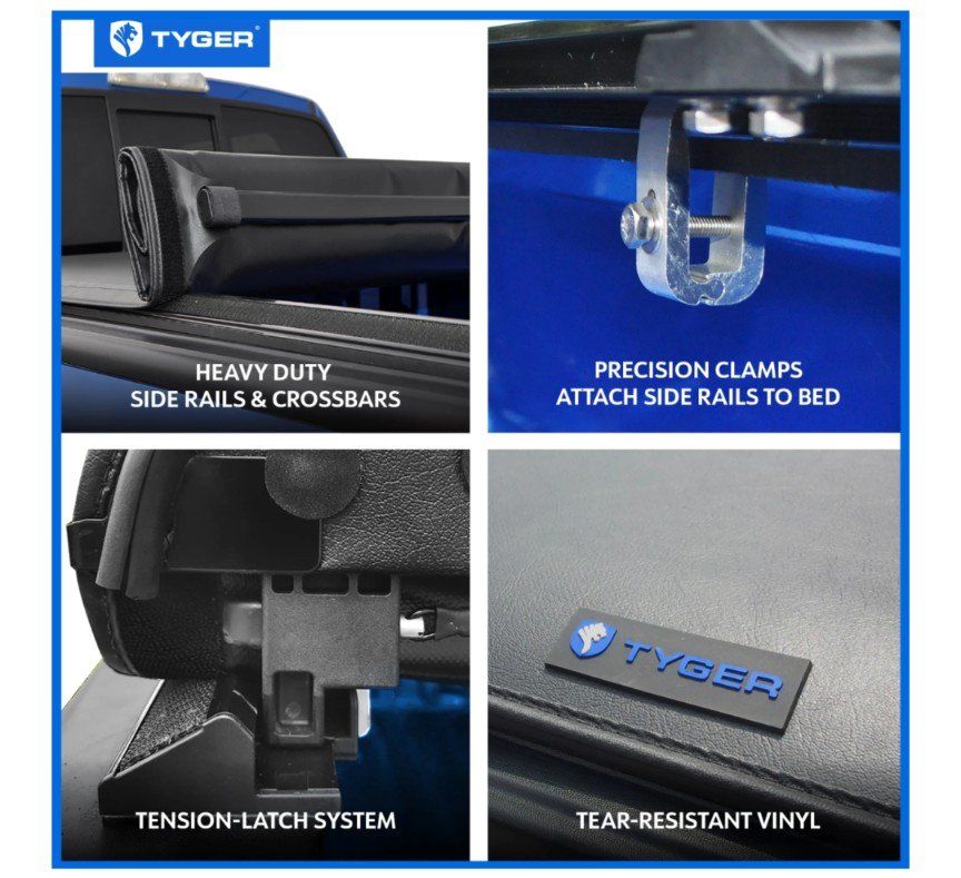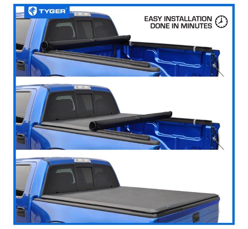 Tyger Auto T1 Soft Roll-up Tonneau Cover combines working-truck utility with recreational capability in one stylish package.