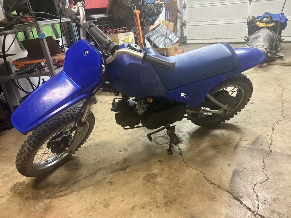 Has some pretty good power for a little two stroke. Nothing wrong with it other than it’s been sitting over the winter and only runs on starting fluid right now. It needs a carb clean. And it’s missing a grip. Other than that this is a great bike. Come check it out