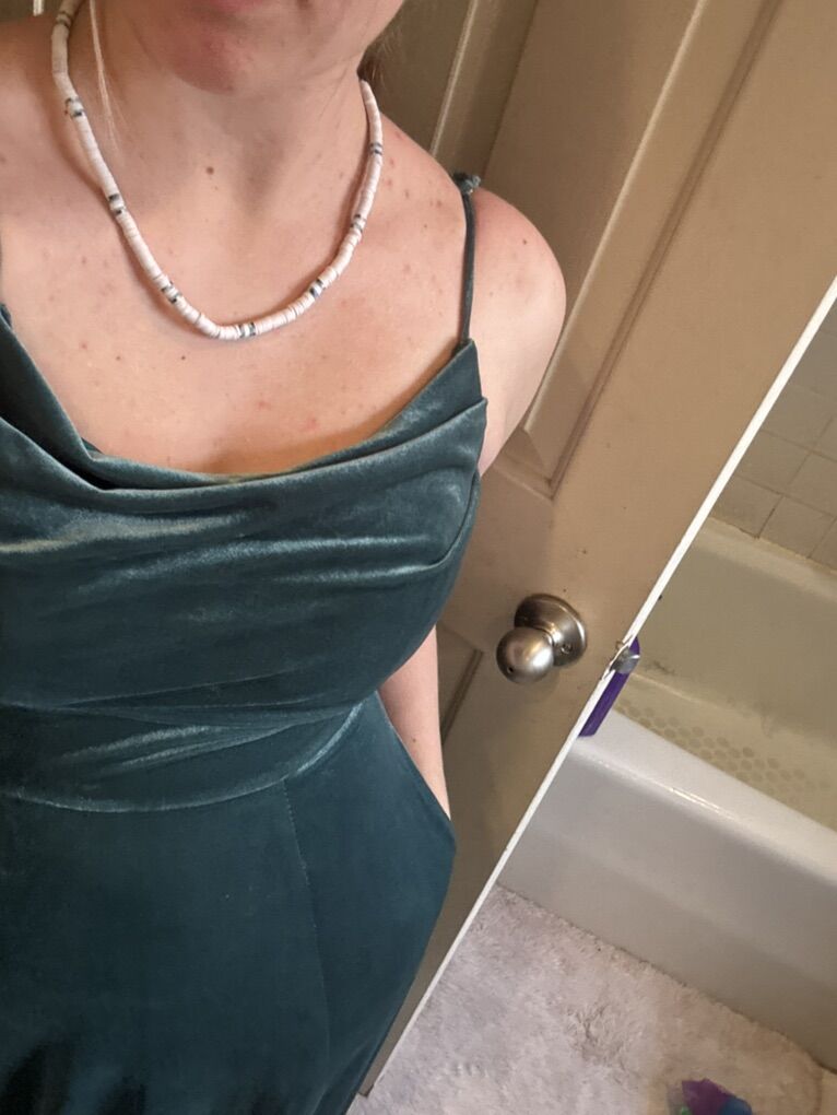 CashAppGreen velvet prom dress, straps to the dress have been fixed
