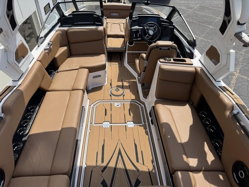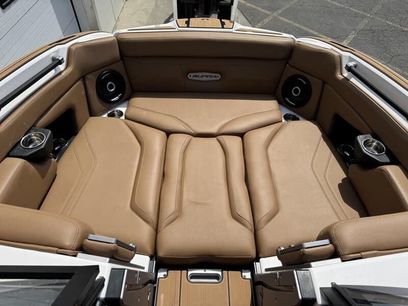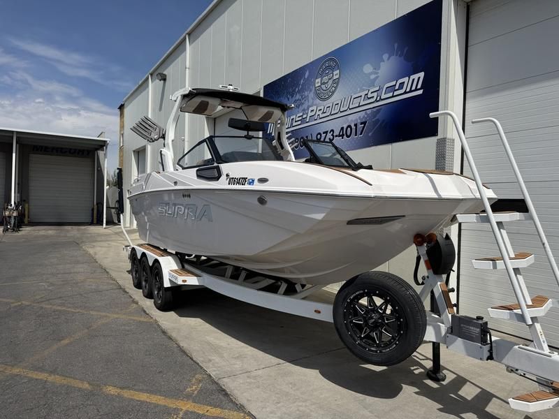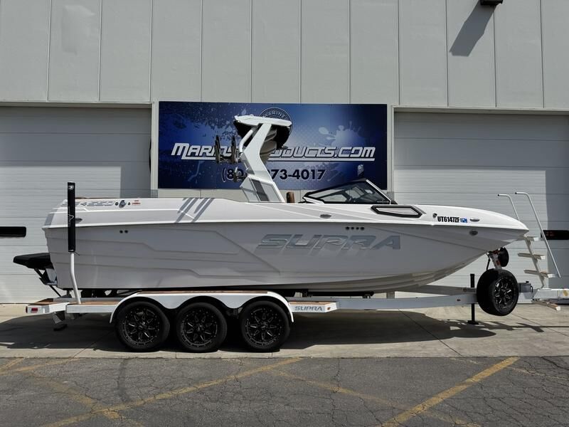 Supra SE with 575 Supercharged Raptor engine. DSD soucnd system, tower speakers, clamping board racks, thrusters, Swellsurf system, triple axle Boatmate trailer.