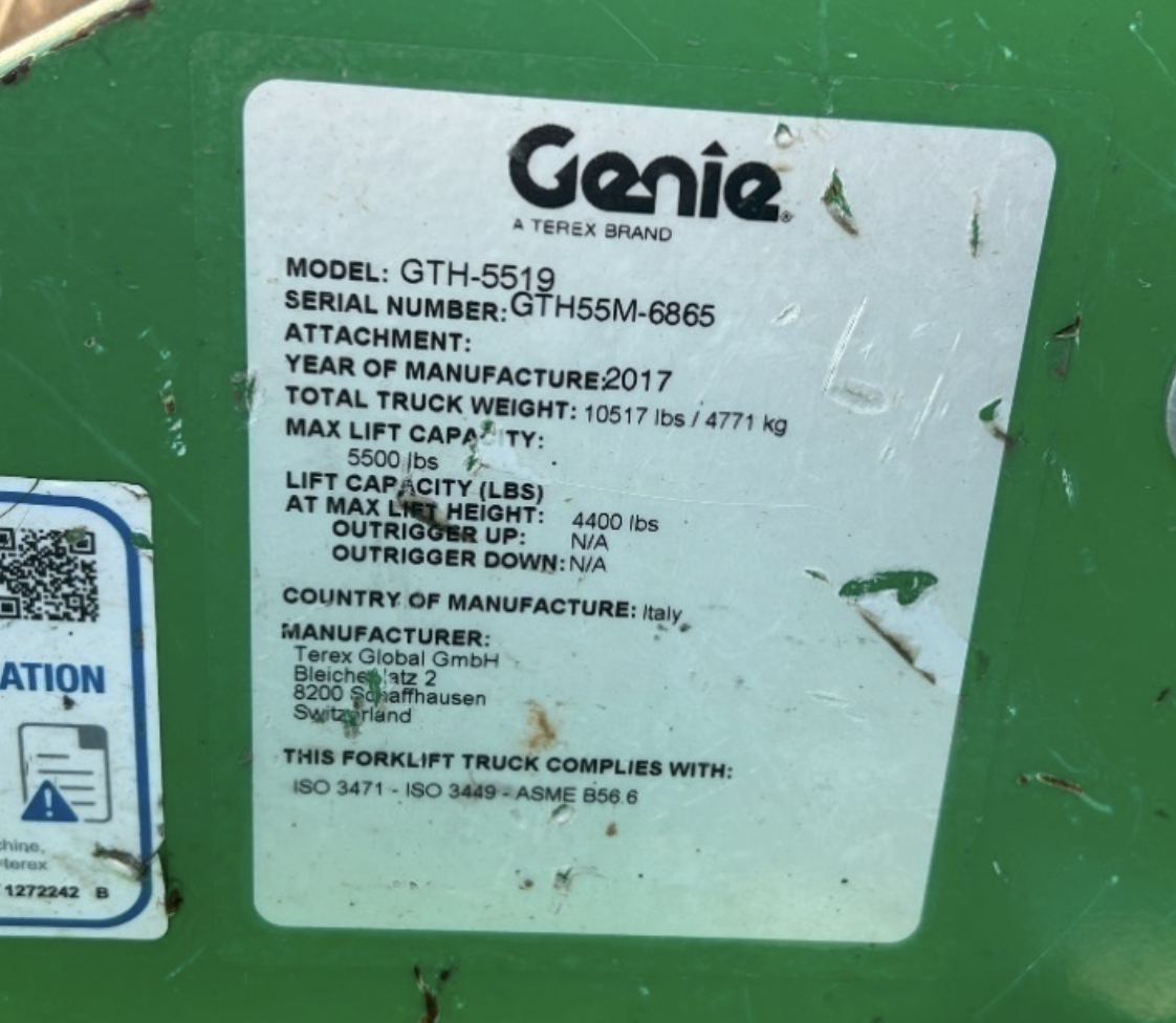5,500 LB 19' Reach Telescopic Fork Lift