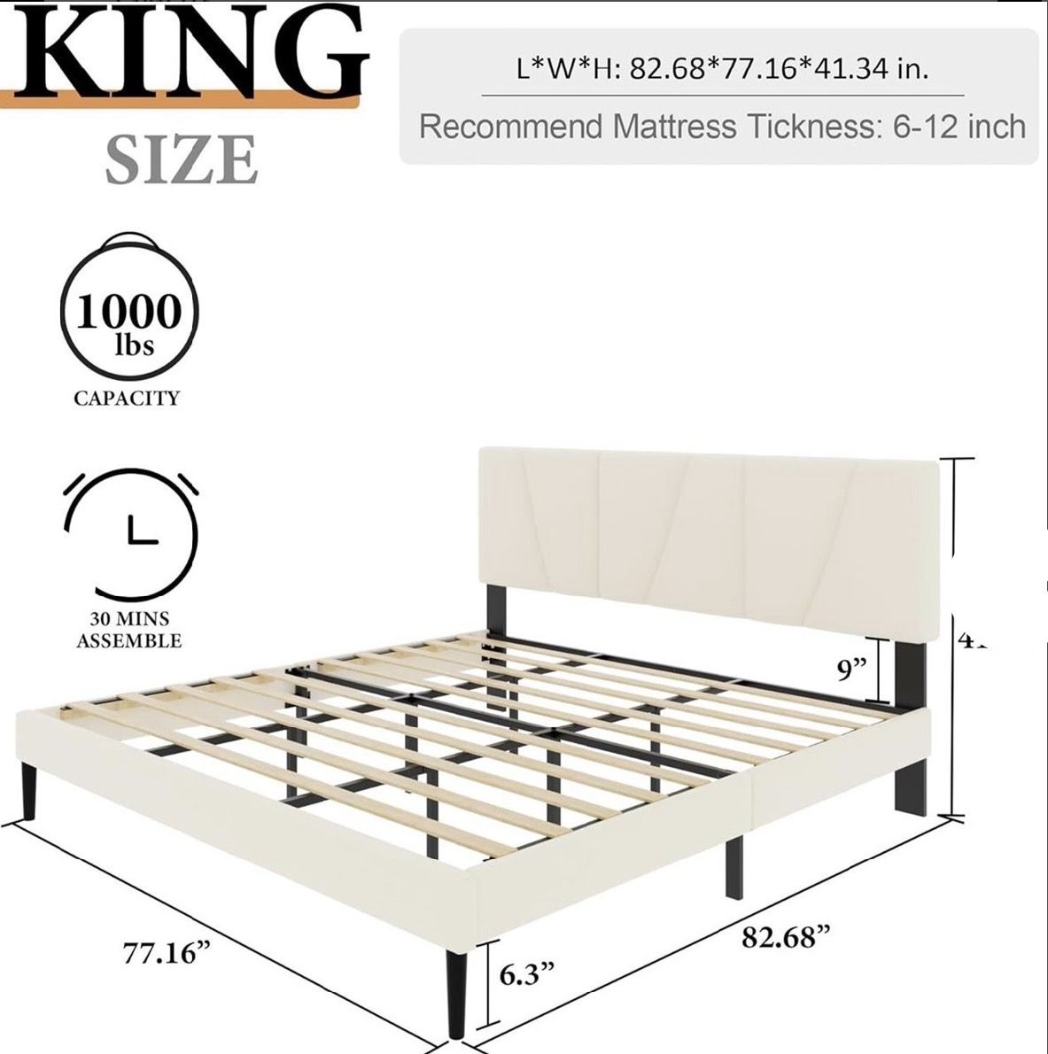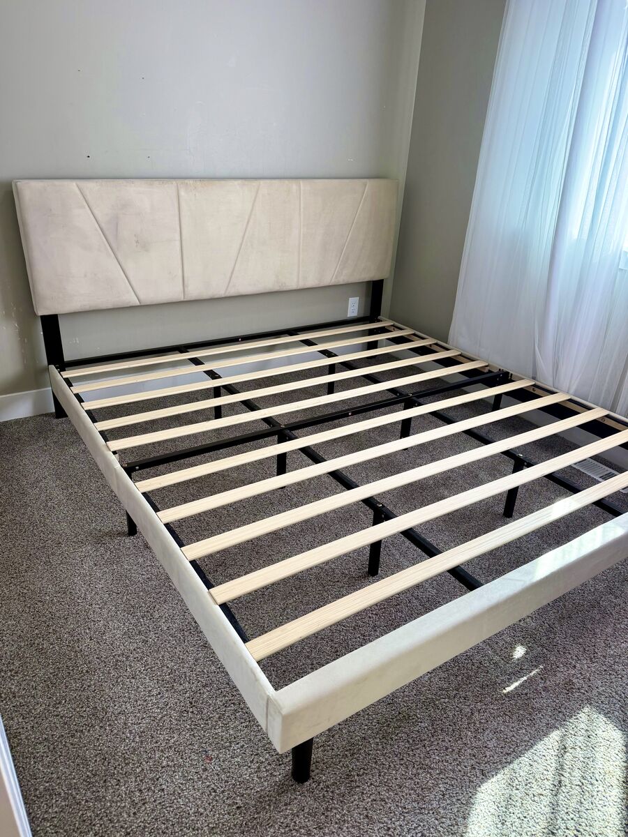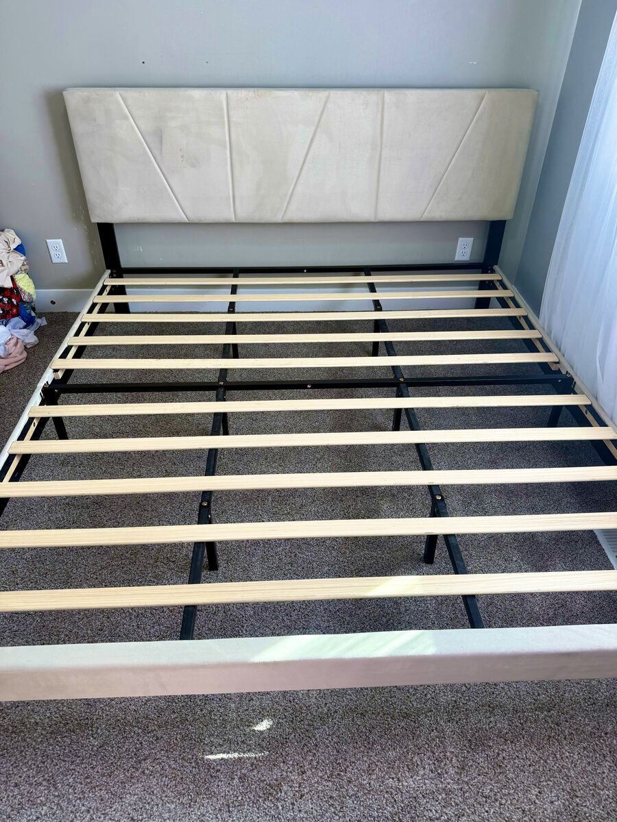 VenmoSelling this beautiful King size bed frame. It features a modern design with soft upholstery that adds a touch of luxury to any bedroom