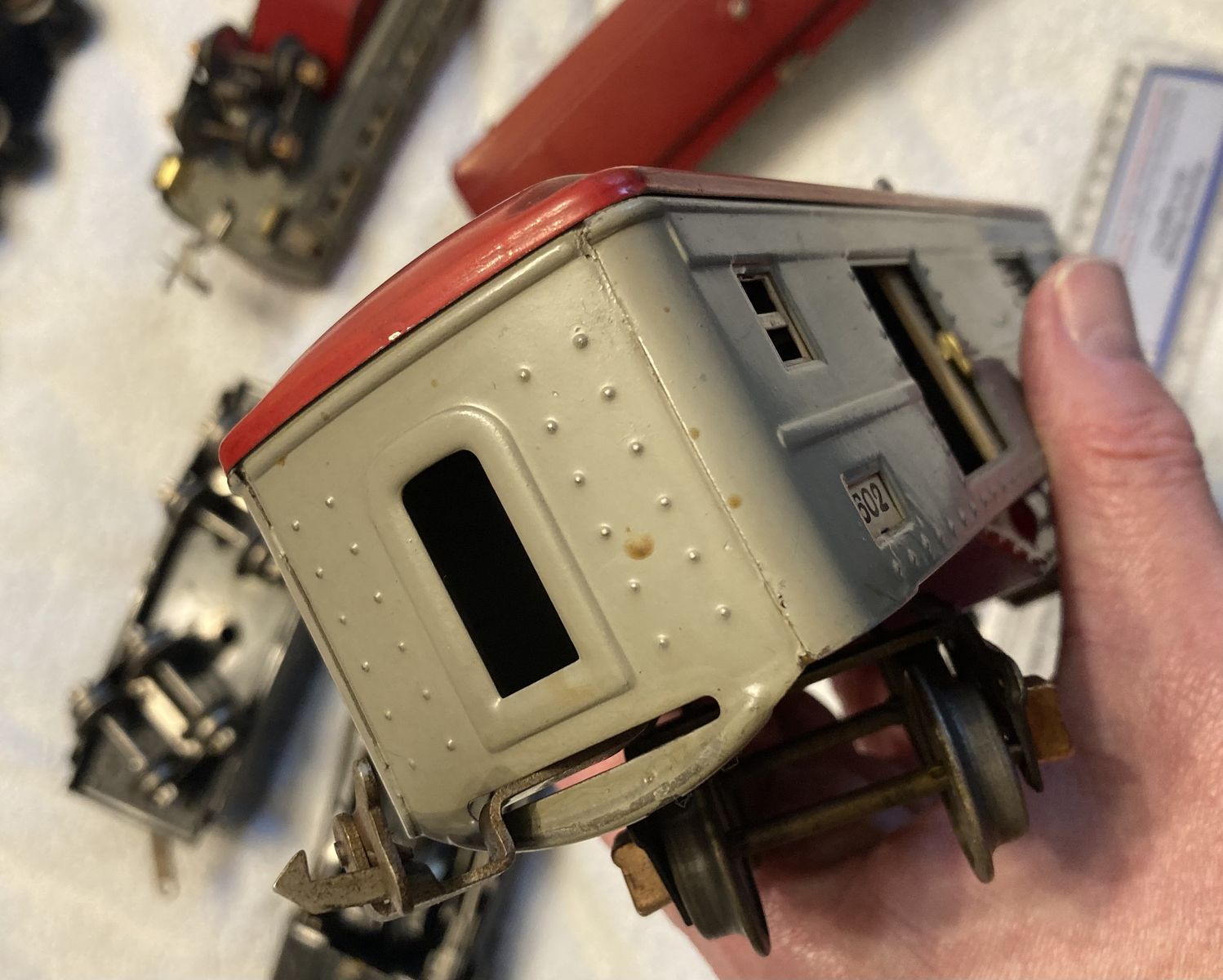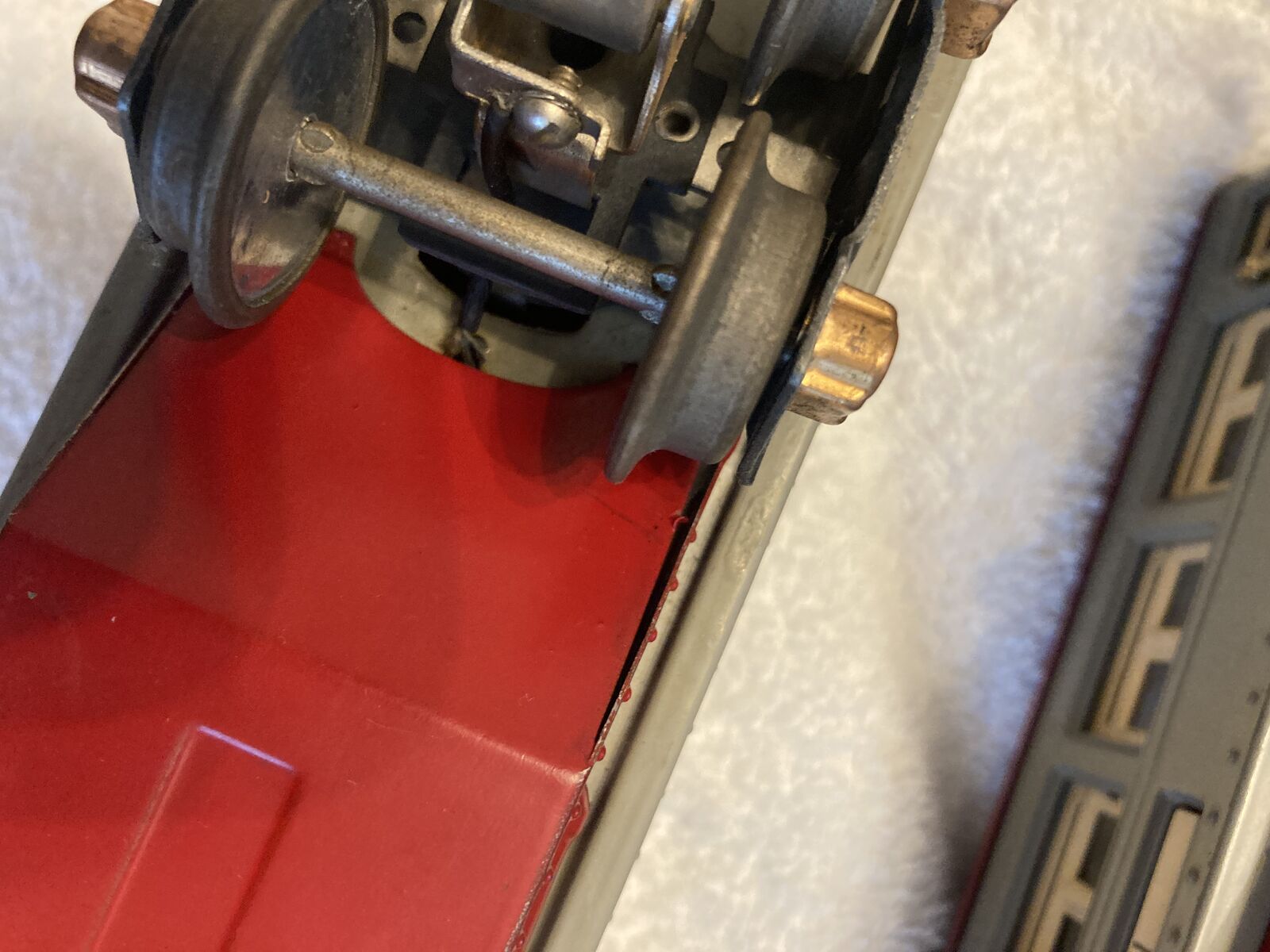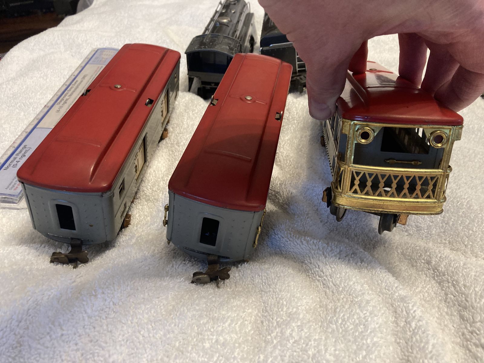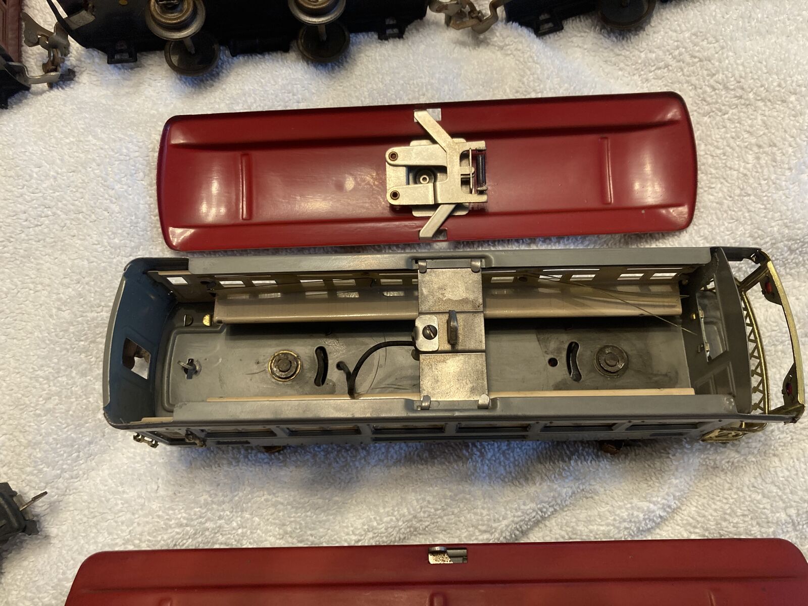 Up for sale is a Lionel prewar 265E Commodore Vanderbilt Locomotive circa 1935-1940, a 265T Tender and a passenger outfit with 600, 601, and a 602 passenger cars. Bench tested the loco ran fine forward and reverse. Set seems in fine condition everything seems all original, with the exception of the drive wheels on the locomotive that have been replaced at one time. The cab on the locomotive appears original very unusual as these often crumb with zinc rot and are replacements. The cars are complete the paint seems very nice but very dull could use a good waxing. Also the wiring on the passenger cars is very brittle and the insulation is missing in spots, it will have to be replaced, the pickup rollers have set screw holders for the wire so no soldering needed there. Bulbs are missing for the cars but are readily available. This is a very eye catching set for display or for flying around your layout.