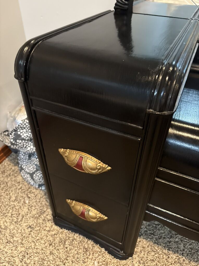 Venmo1940 antique refurbished waterfall dresser. Measure to in photo