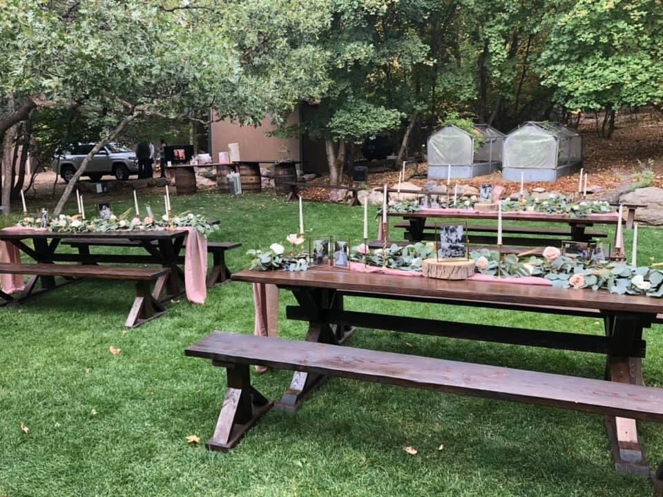 $70 per set (1 table + 2 benches) - seats up to 10 guests