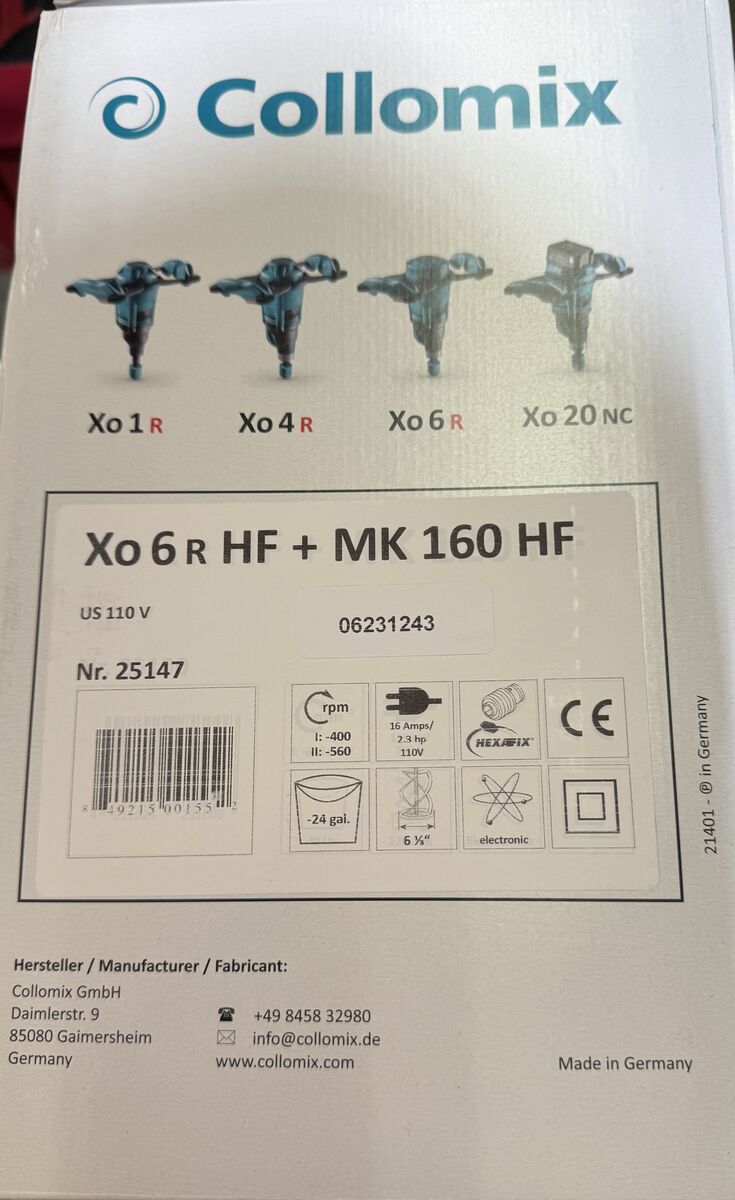 Collomix Xo-6R mixer $750 new 1 for $500 or 2 for $800