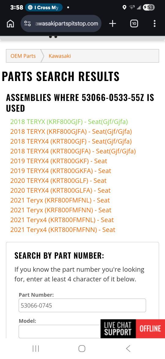 Venmo53066-0745-13Z Kawasaki Terxy 2 and 4 seater BLACK/SILVER BRAND NEW BOTTOM SEAT 2017-2023