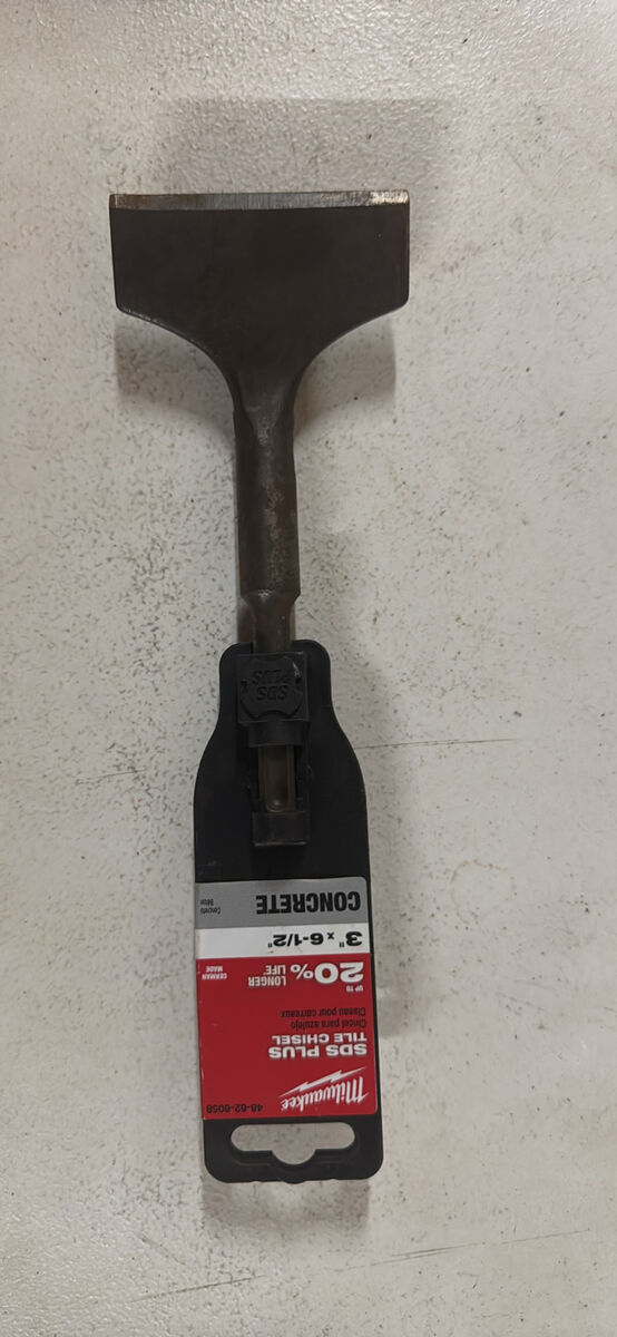 Milwaukee SDS Plus tile chisel. Good for concrete projects. Size is 3" x 6-1/2". Has SDS Plus connection. $20 each or 2 for $30