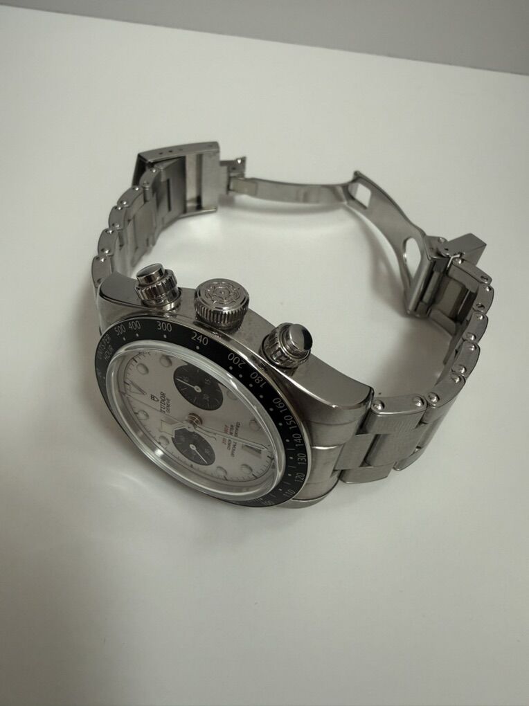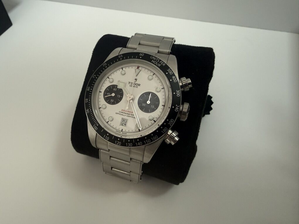 For sale is my Tudor Black Bay Chrono with the highly sought-after white Panda dial. This piece combines the heritage of Tudor’s divers with the functionality of their chronograph line, powered by the Manufacture Calibre MT5813 (based on the Breitling B01).
