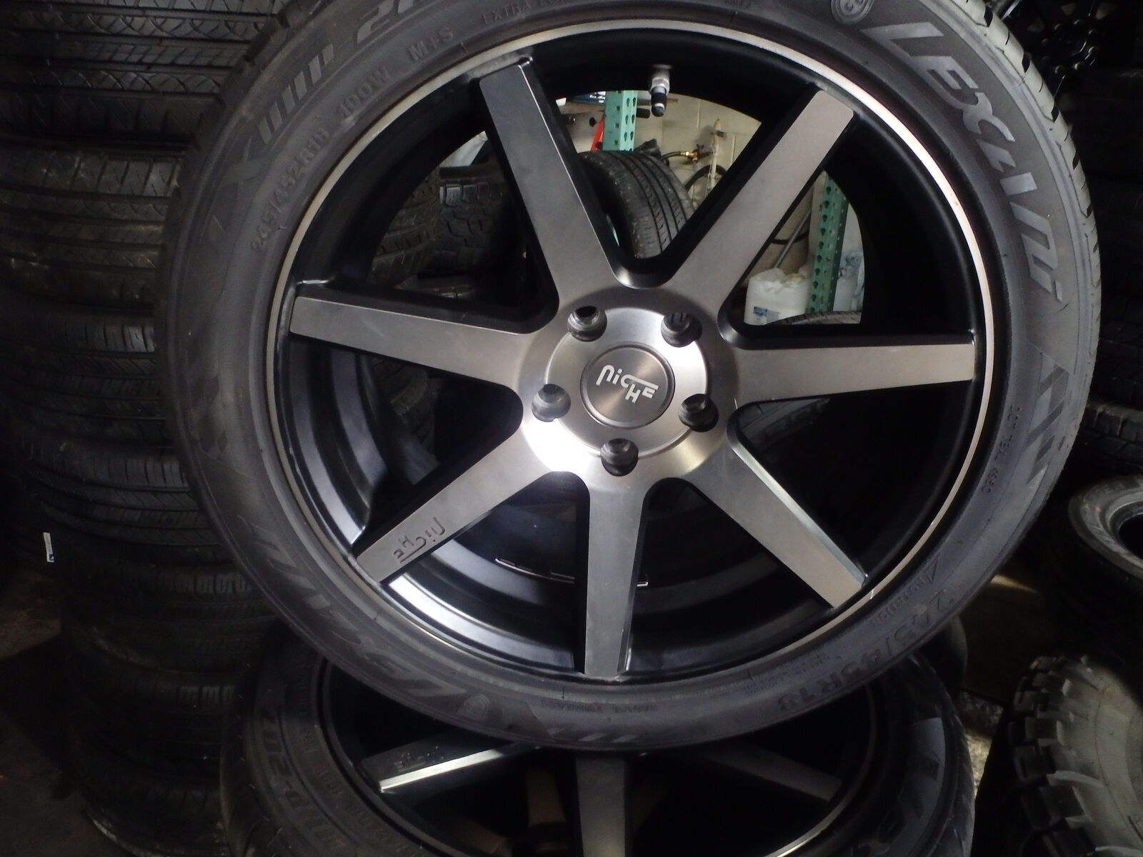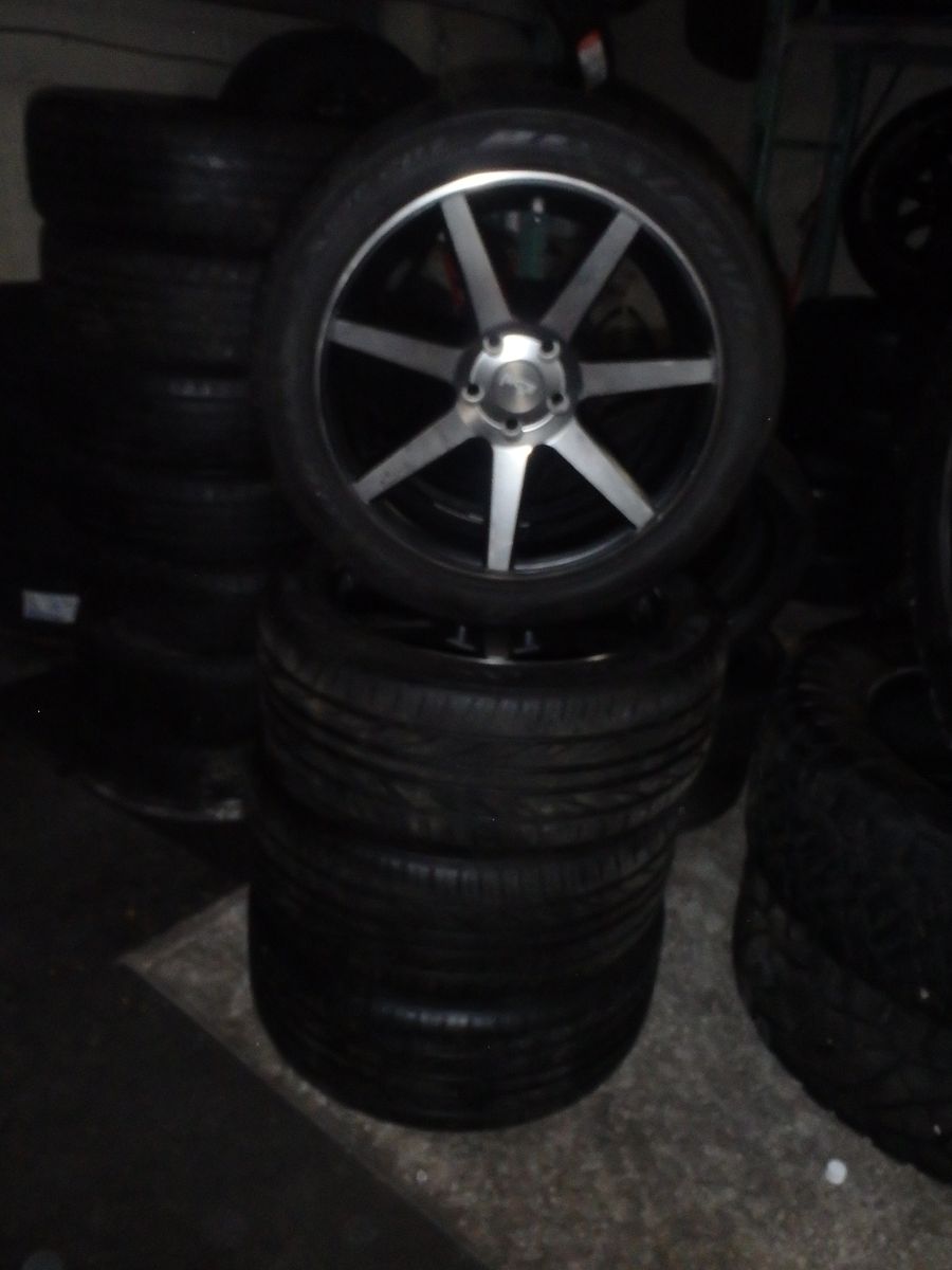 SET OF NICHE WHEELS 18X9J J ET 40 , 5X114 AND USED TIRES THESE SET OF WHEELS ARE IN GOOD CONDITION. THE TIRES ARE 245/45R18 SENTURY TOURING FOR ONLY $780. IF WE NEED TO TRANSFER TPMS SENSORS FROM OTHER WHEELS ONTO THESE, WE WILL DO IT FREE OF CHARGE CALL FOR ANY QUESTIONS AT JOSE OR ROBERTO AT 801 878-4556 OR 801 410-4460 OR VISIT US AT J&J TIRES 7615 STATE STREET MIDVALE UTAH ,WE'RE OPEN MONDAY TO SATURDAY FROM 9:00 AM TO 6:00 PM, WE HAVE A LOT MORE AN USED TIRES AND BRAND NEW CALL US IF YOU ARE LOOKING FOR AN OTHER SIZE WE MAY HAVE'IT....