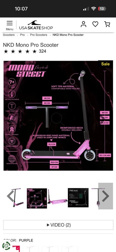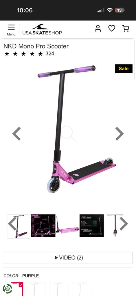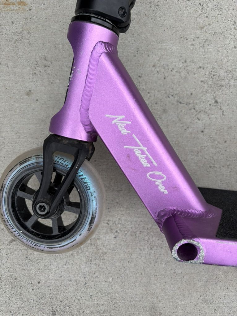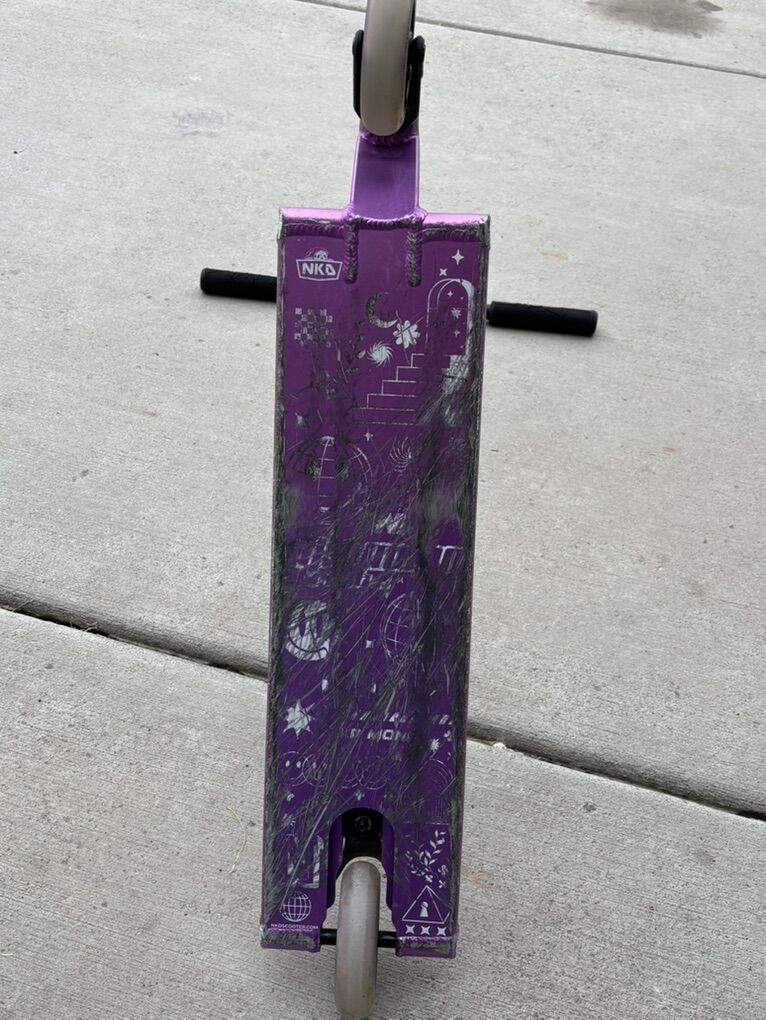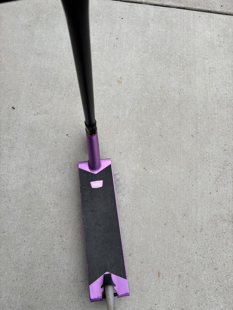 VenmoGreat scooter in super good condition it's the NKD mono pro street scooter super high quality and brand new worth over 400$ it's in super good condition everything is just as it came besides the deck has paint scraped off in the bottom from grinds and there's a few scratches all throughout I swapped out the stock grips for black ones wanting around 200$ but send offers