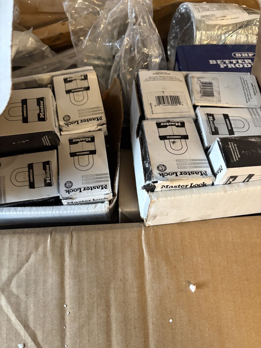 All items new flag poles, hardware for cabinets, master locks with keys, keyless entry door, tarps, spill kits, too much to name valued at over $400.