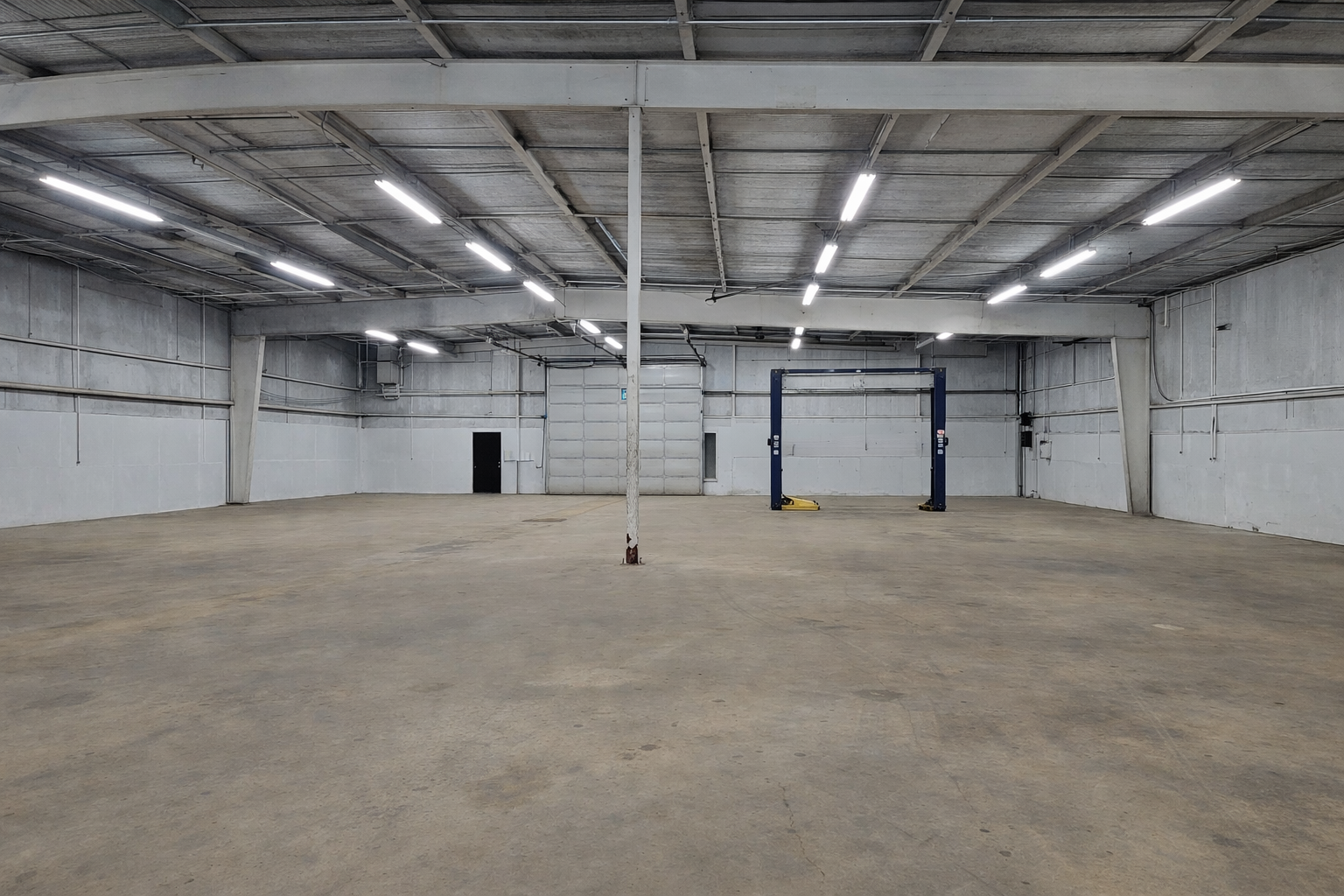 A car lift is already in place, making the space especially attractive for automotive, service, light industrial, or contractor users.