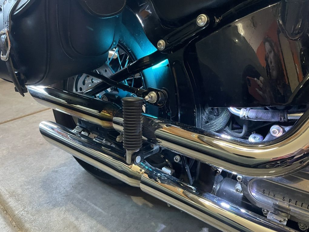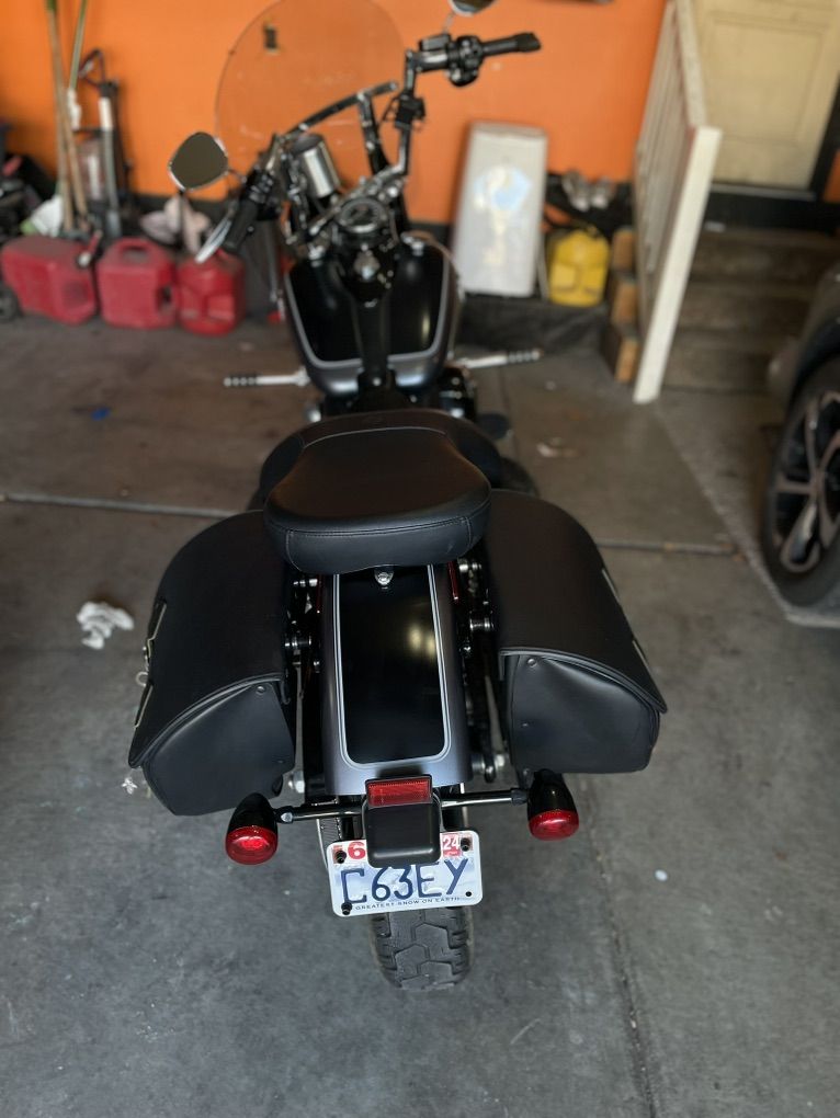 Cruise control Mini apes Duo seat and sissy bar and single seat Detachable saddle bags Detachable smoked windshield Underglow light Highway foldable pegs Smoked lenses