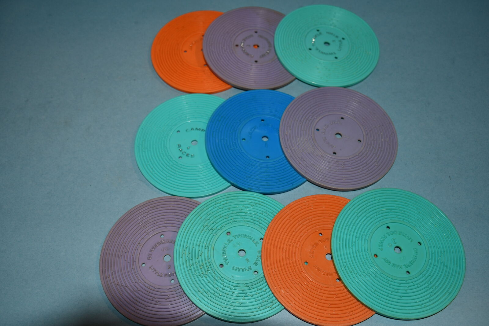 This Set of VINTAGE FISHER PRICE REPLACEMENT RECORDS for the MUSIC BOX PLAYER + MAGNETIC LETTER & NUMBERS for for the SCHOOL HOUSE DESK are from a smoke free home. Questions??? Please ask. We are located in Plain City. Cash only please.