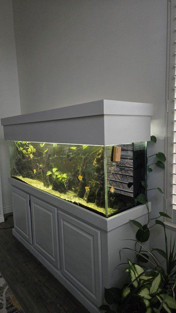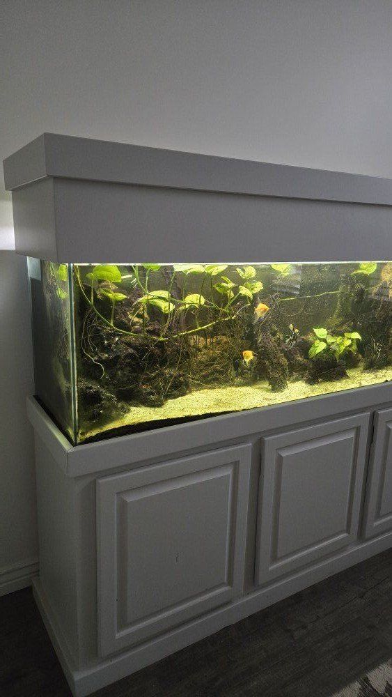 150 gallon fish tank with dual corner overflows. set up either for a sump or canister filters. Currently a planted tank with angelfish. led lighting.