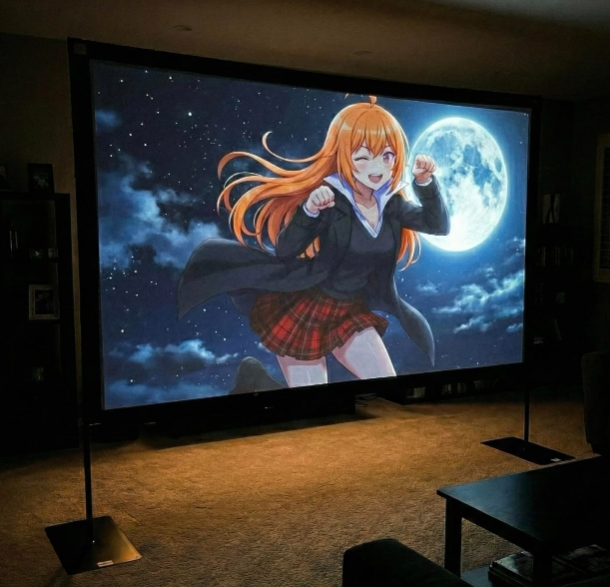 ZelleCinema-Grade Viewing Experience: Integrated installation ensures the projection screen fits perfectly to the frame, eliminating wrinkles even at the edges. Immerse yourself in vibrant 4K HD visuals delivered by premium washable milk silk fabric. Whether indoors or outdoors, the projector screen offers a crisp, bright picture from both sides—with a 160° ultra-wide viewing angle that brings the theater to your backyard. It folds flat for storage and stays ready for your next screening Portable Design, Easy to Carry: This portable projection screen comes with a dedicated storage bag for easy transport, making it ideal for outdoor camping and similar activities. If strong winds arise, you can easily detach the windproof accessories and use the included ropes, ground stakes, and sandbags to secure the projector screen