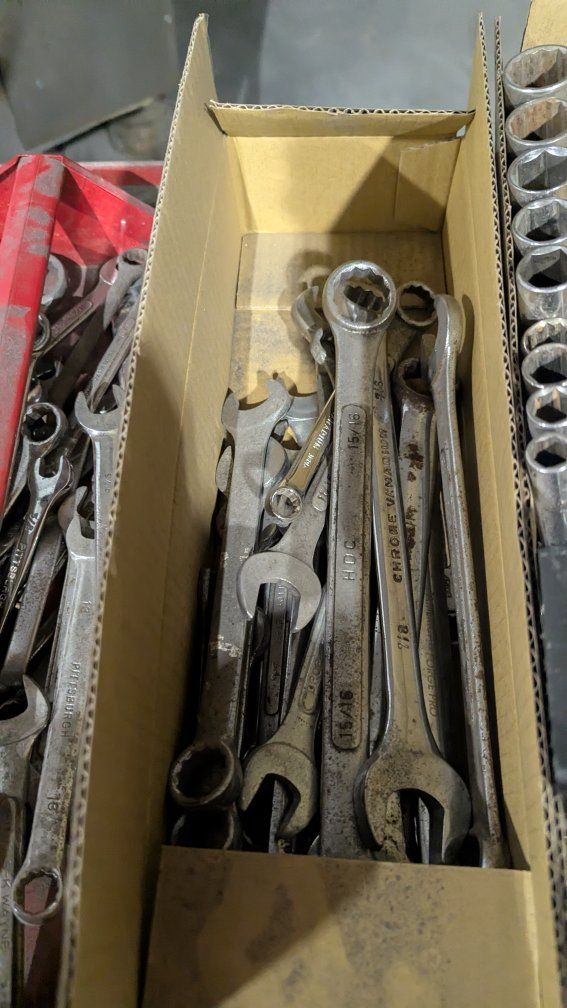 toolbox with wrenches and sockets. don't know if there is a full set of sockets or wrenches. does not come with ratchets. the toolbox has seen its use, 2 drawers open and close really rough. the others work fine. 100 obo. open to trades. cash is king