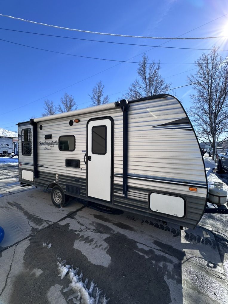 • Model: Springdale Mini 1750 • Lightweight & Easy to Tow – great for SUVs and half‑tons • Open, efficient floorplan • Comfortable sleeping space • Kitchen with fridge, cooktop, and storage • Bathroom with shower • Well‑maintained, clean interior • Perfect starter camper or budget‑friendly upgrade