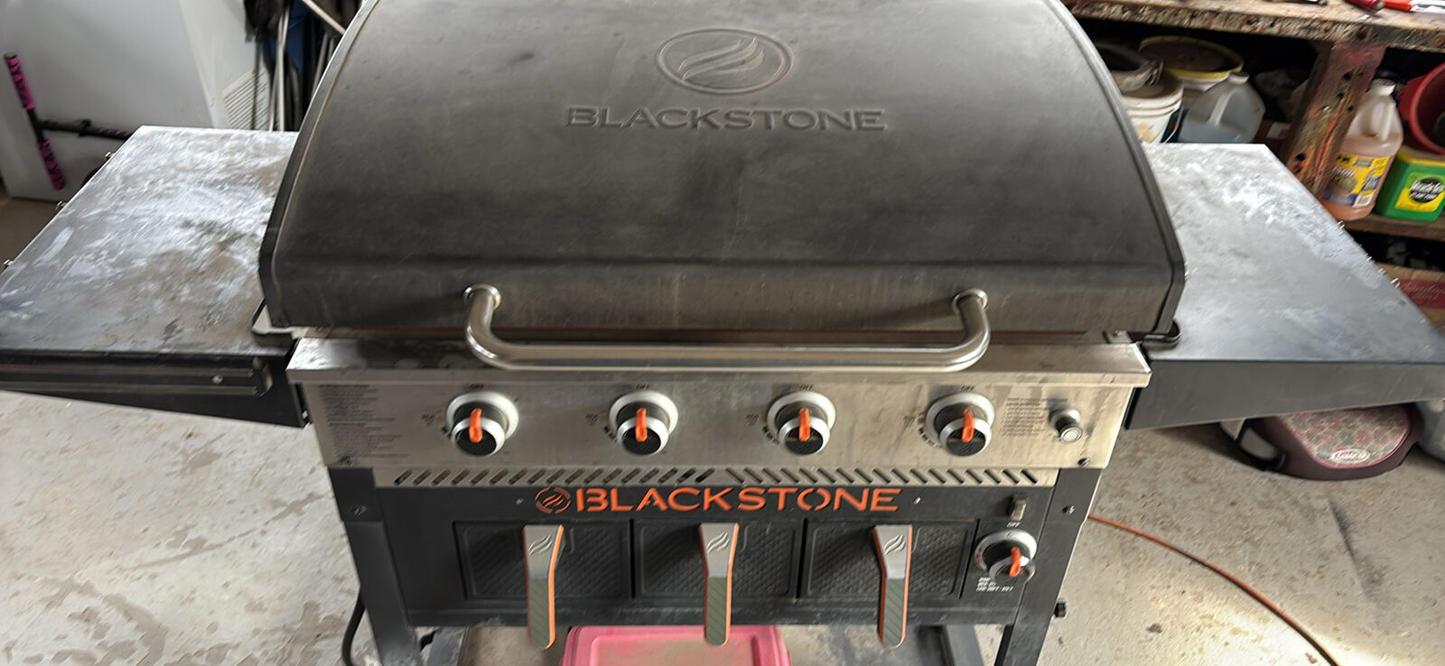 Good blackstone griddle used it about 4 times comes with a full tank of propane and has 3 basket air fryers..