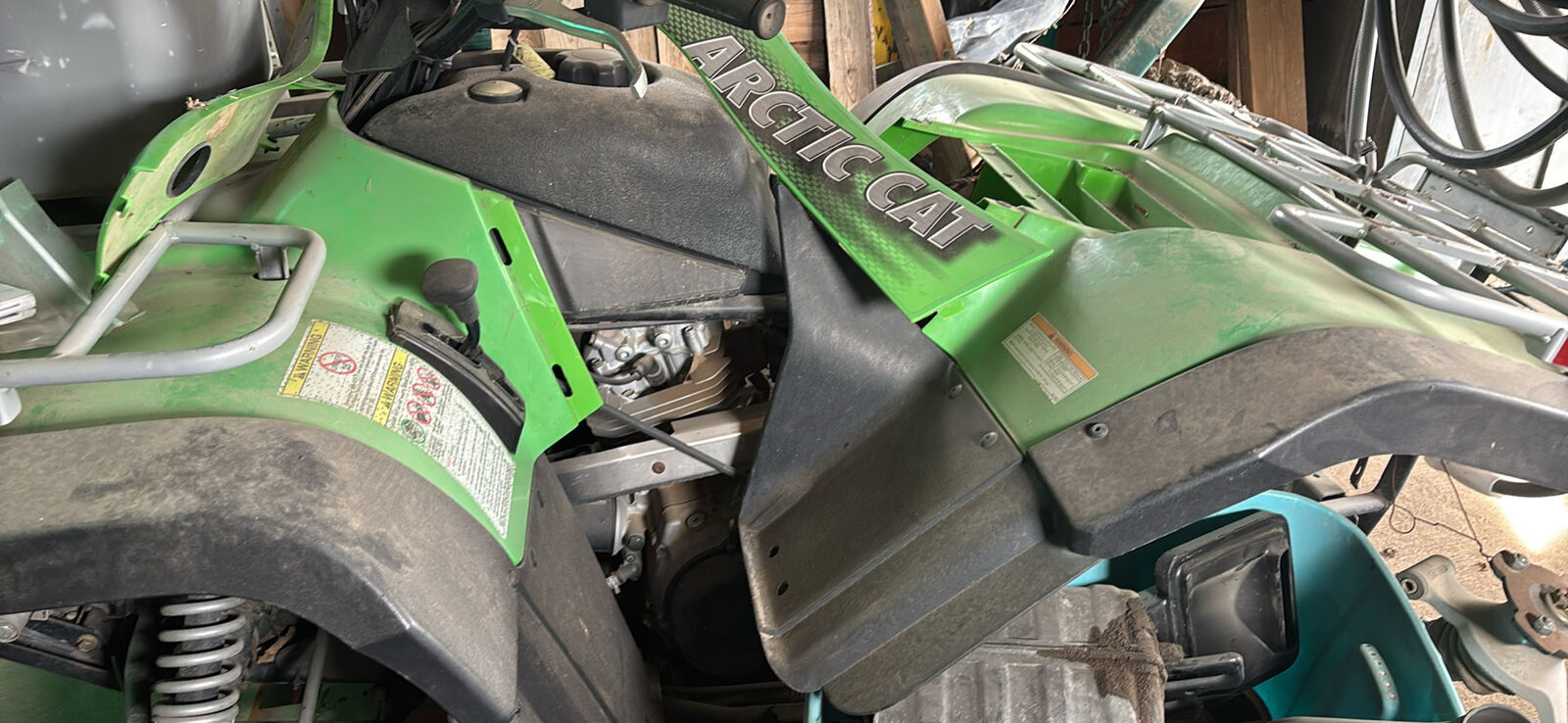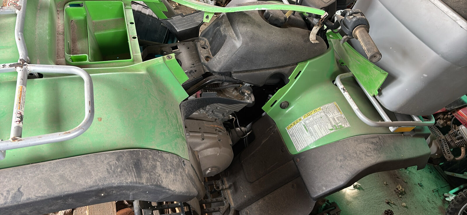 Four wheeler apart but everything is there needs tires and rims and work on new flywheel with stator magneto to get it going .my loss your gain .