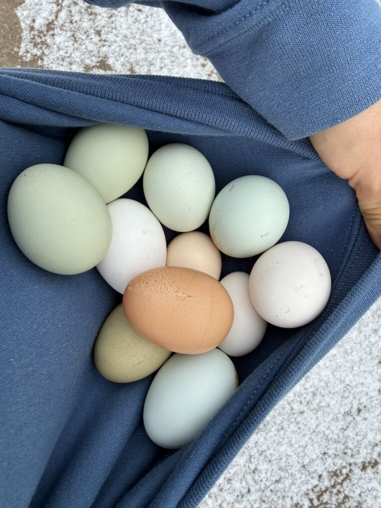 Nothing beats fresh eggs that haven’t been sitting on a shelf for months! Delicious taste and colorful, fun eggs to look at. These are gathered daily and have not been washed. They come from happy, healthy hens! If you return an egg carton, you get 50 cents off!