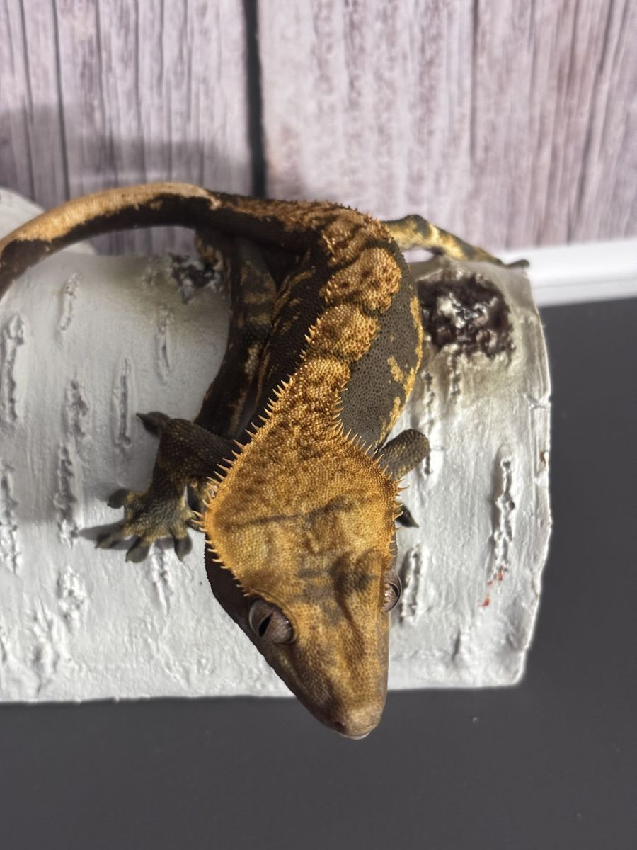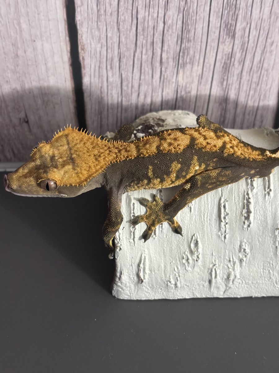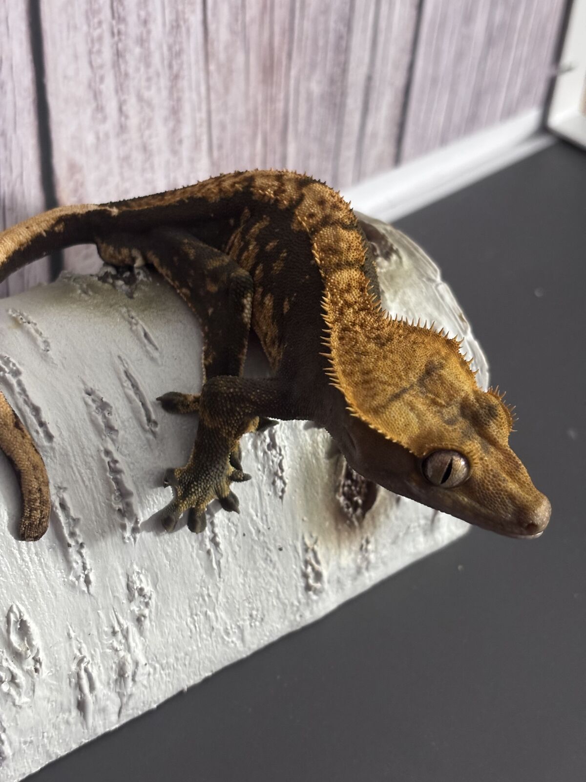 ZelleMake crested gecko. HD 11-23-23 weight 25g. Morph is a harlequin.