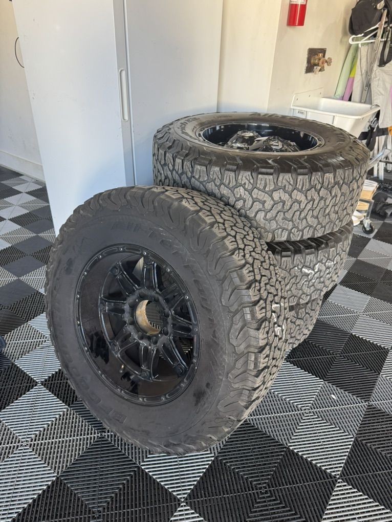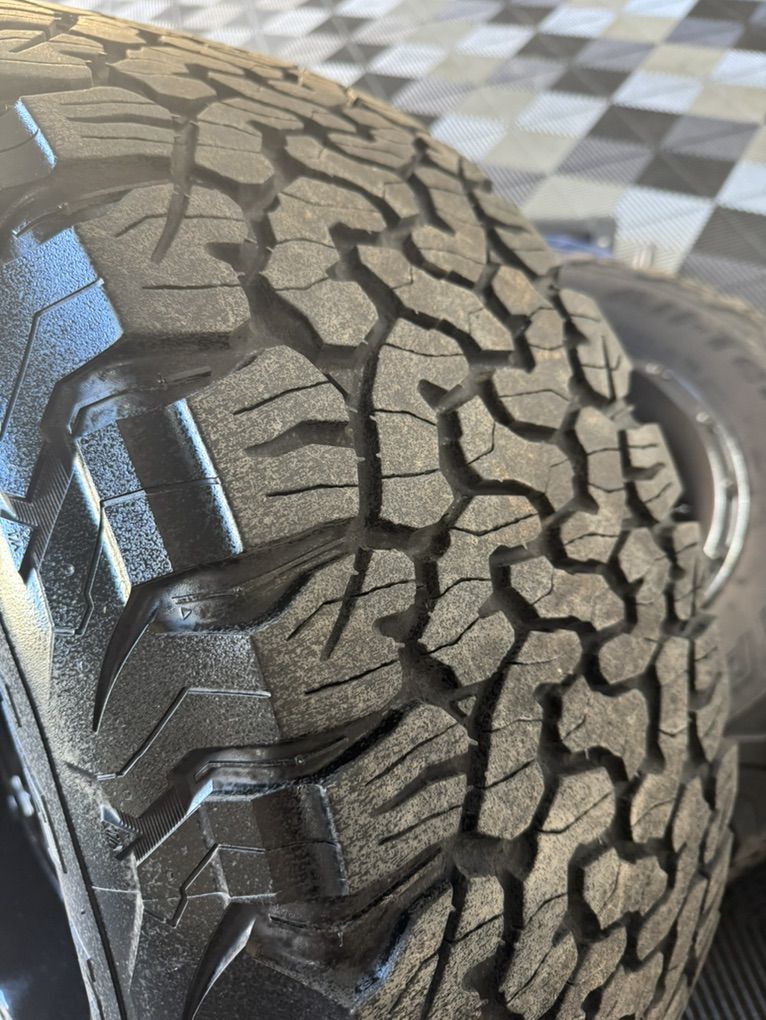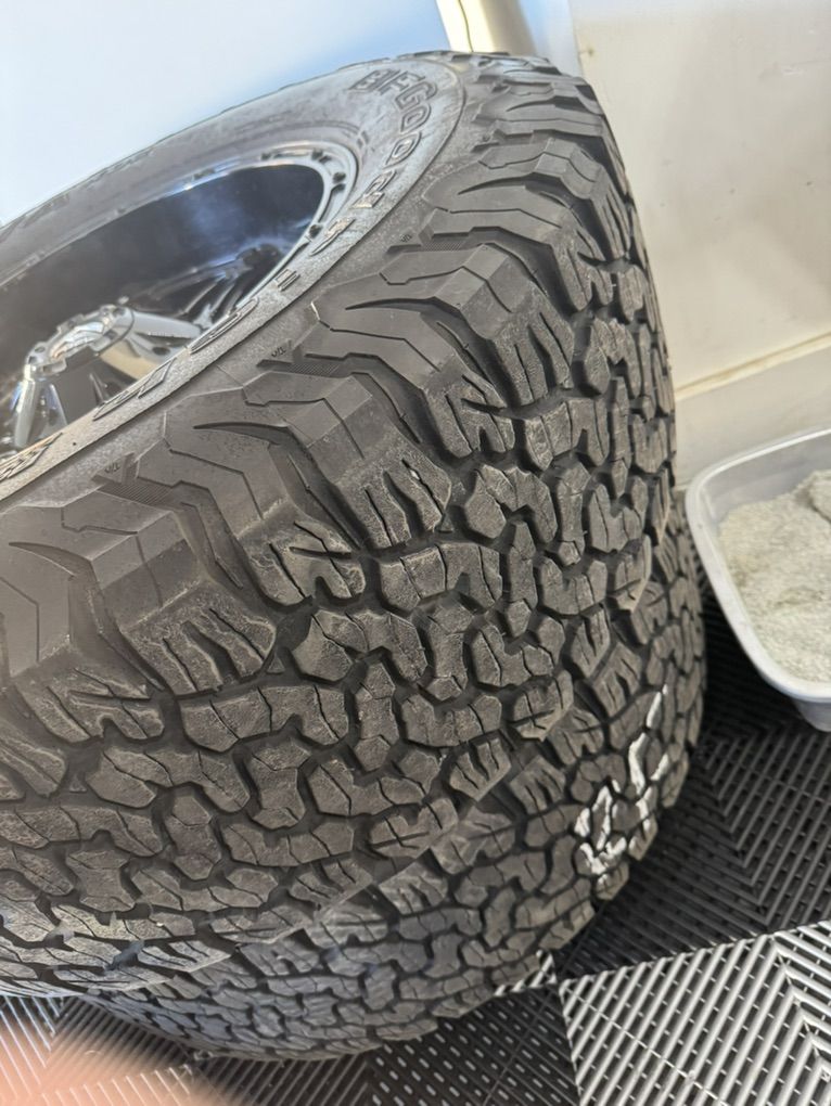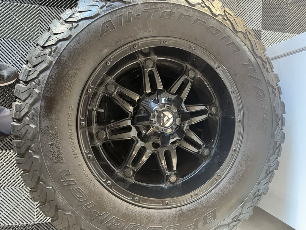I just took these off of my 2024 F-350 and decided to go back to My stock rims /Tires. They are 8 lug 37x12.50x20LT 126R BFG, K02 /AT Load E. TPMs sensors are in the tires. They have about 50% tread left on the tires. These tires have a 50k warranty and I’ve put about 22k miles on them. Plenty of tread left. Comes with Bolts and caps. One of my pictures has them on my truck. Paid over 4k new. No trades or low ball offers.