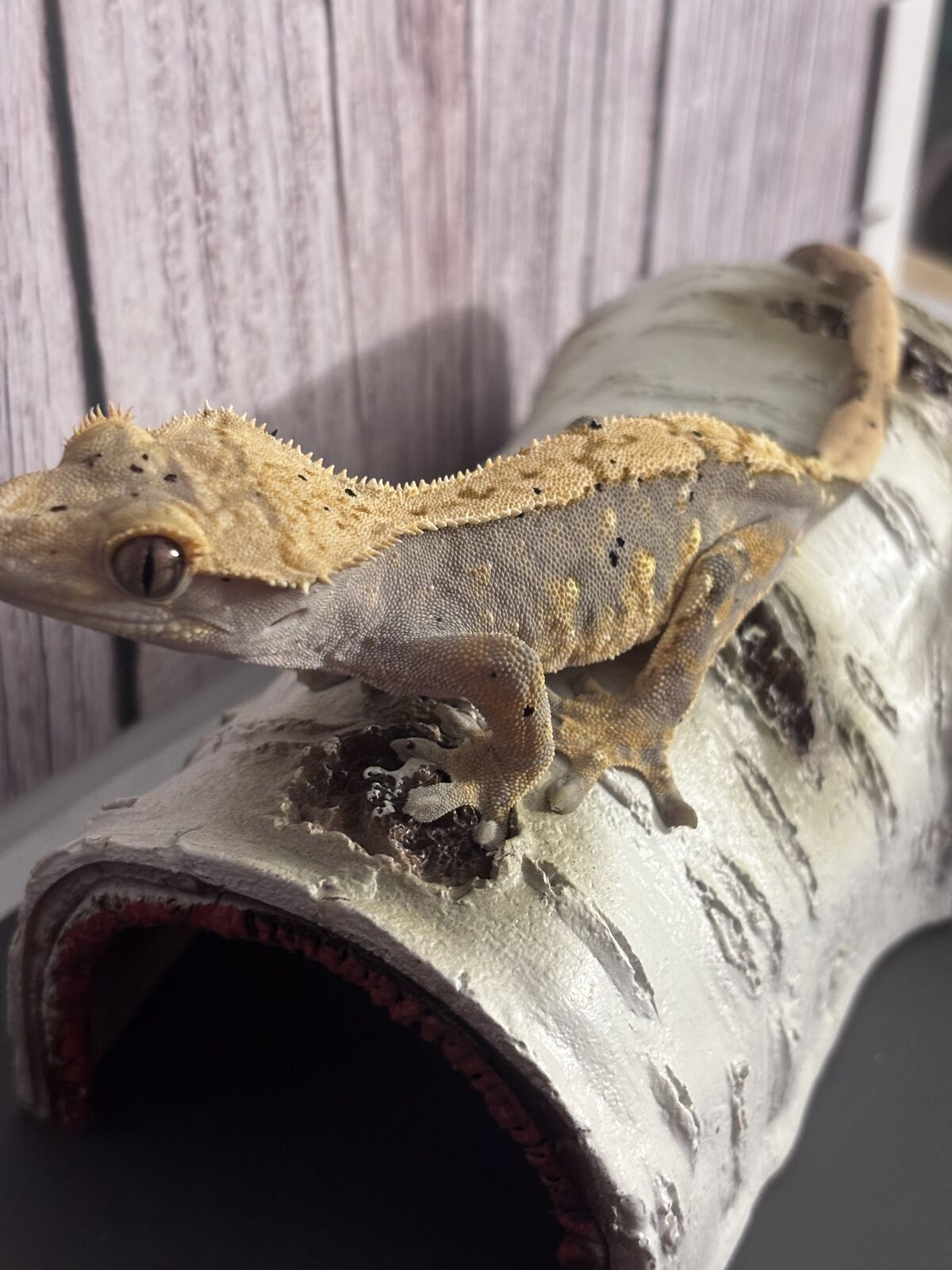 PayPalAdult female crested gecko . HD 8/27/24. Morph is lavender dalmation . NO TRADES/ SERIOUS INQUIRIES ONLY PLEASE.