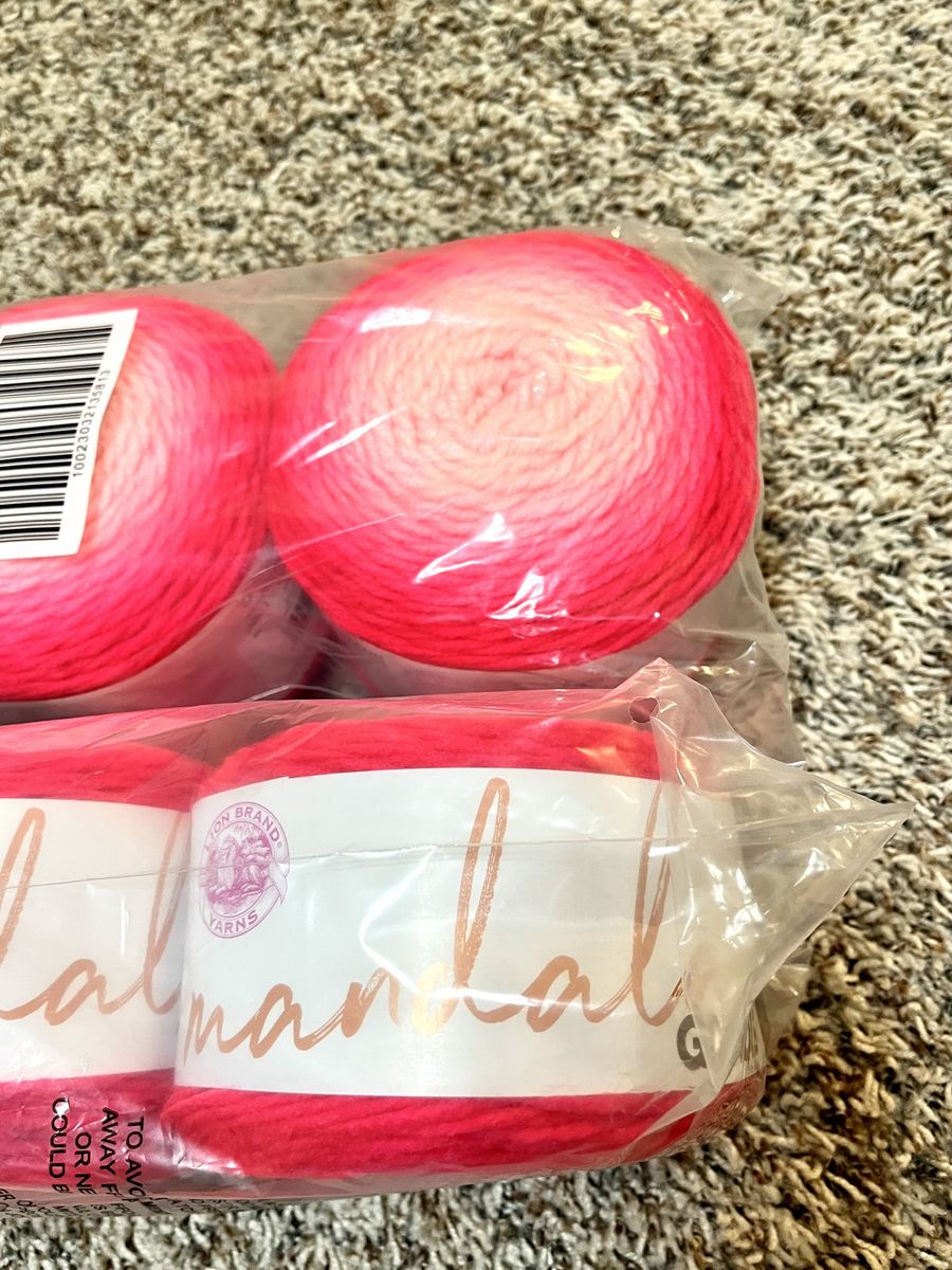 VenmoLion Brand Mandala Yarn in Hot Pink. New in manufacture's plastic. 6 skeins. 5.29 oz, 295 yards. $25 for all 6. Please text 801-721-3402.