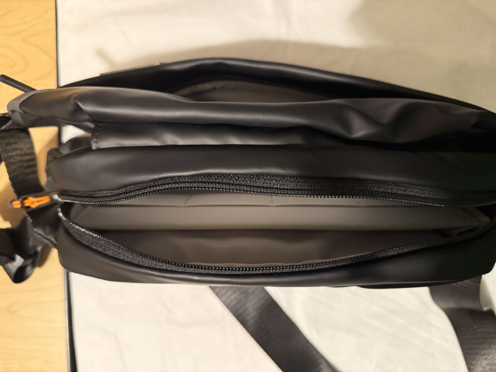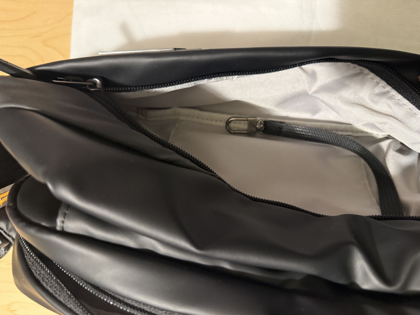 Selling an Inateck Sling Bag in like-new condition. Black exterior with a light gray interior lining, which makes it much easier to see and find your items inside.