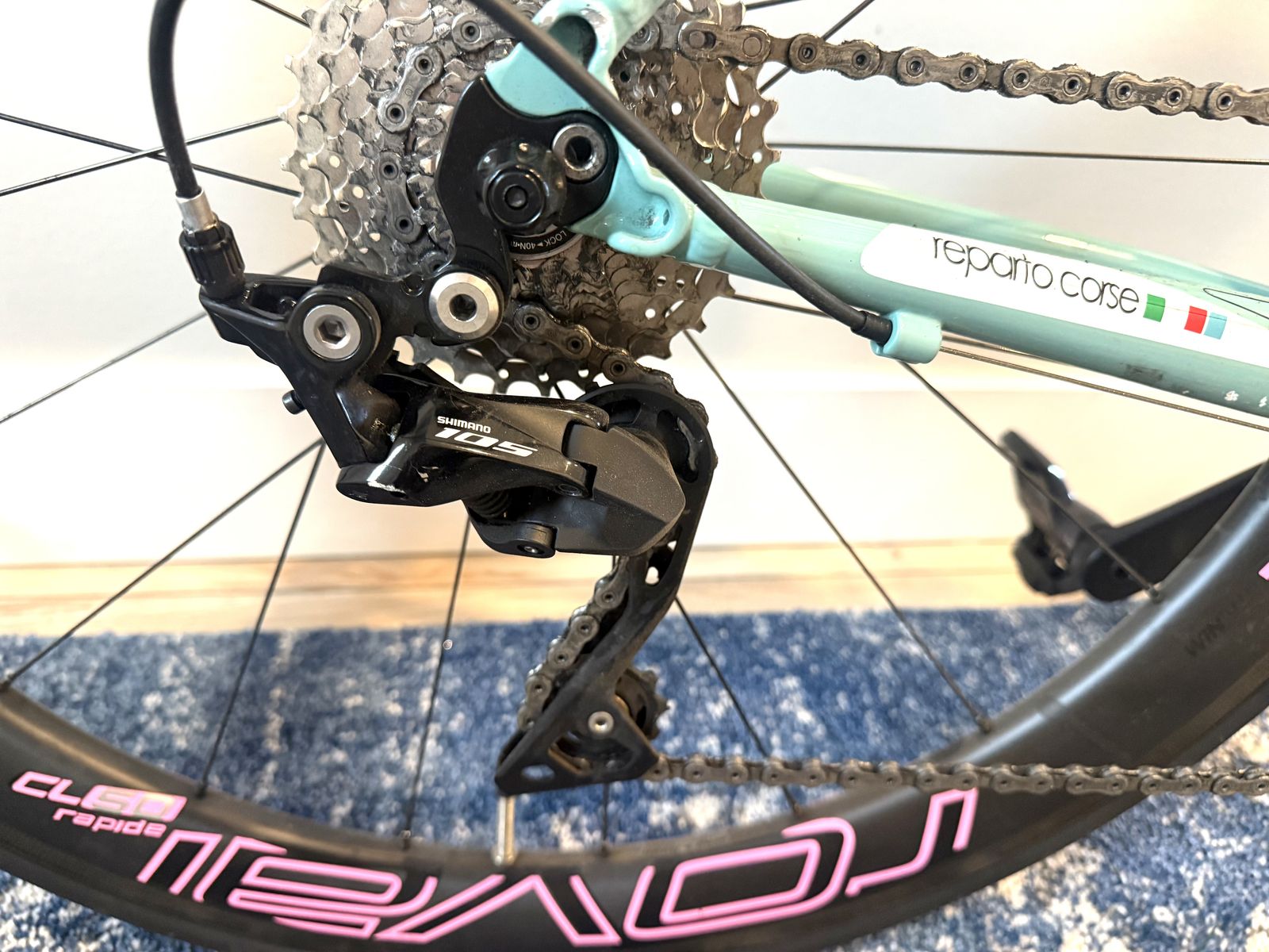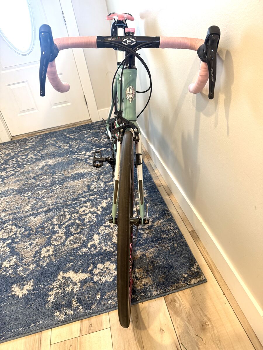 ApplePayThe only thing on this bike that is original and hasn't been upgraded is the Frame. Carbon fork, Newer Shimano 105 Components (Ive only ridden once with these components so they are pretty much brand new.) The upgraded 105 components are better than the old Ultegra I was told by a bike shop owners. They shift and transition Perfectly. I upgraded the seat to a carbon fiber, new hub on front handbars and upgraded handlebars, Brand new tires with ROVAL Carbon fiber CL50 Rapid wheels. These are being sold used right now for $1250 just for the wheels and again have only been rode on once. Upgraded LOOK Clip in pedals. I do not want to sell this bike as you can see I have babied it and spent a lot in upgrades. Handlebar tape is light pink and as you can see are new and not dirty or used. Thats how little this bike has ben ridden. You won't find a better price for a bike with all these upgrades added. Due to job loss I am being forced to sell. My loss is your gain.