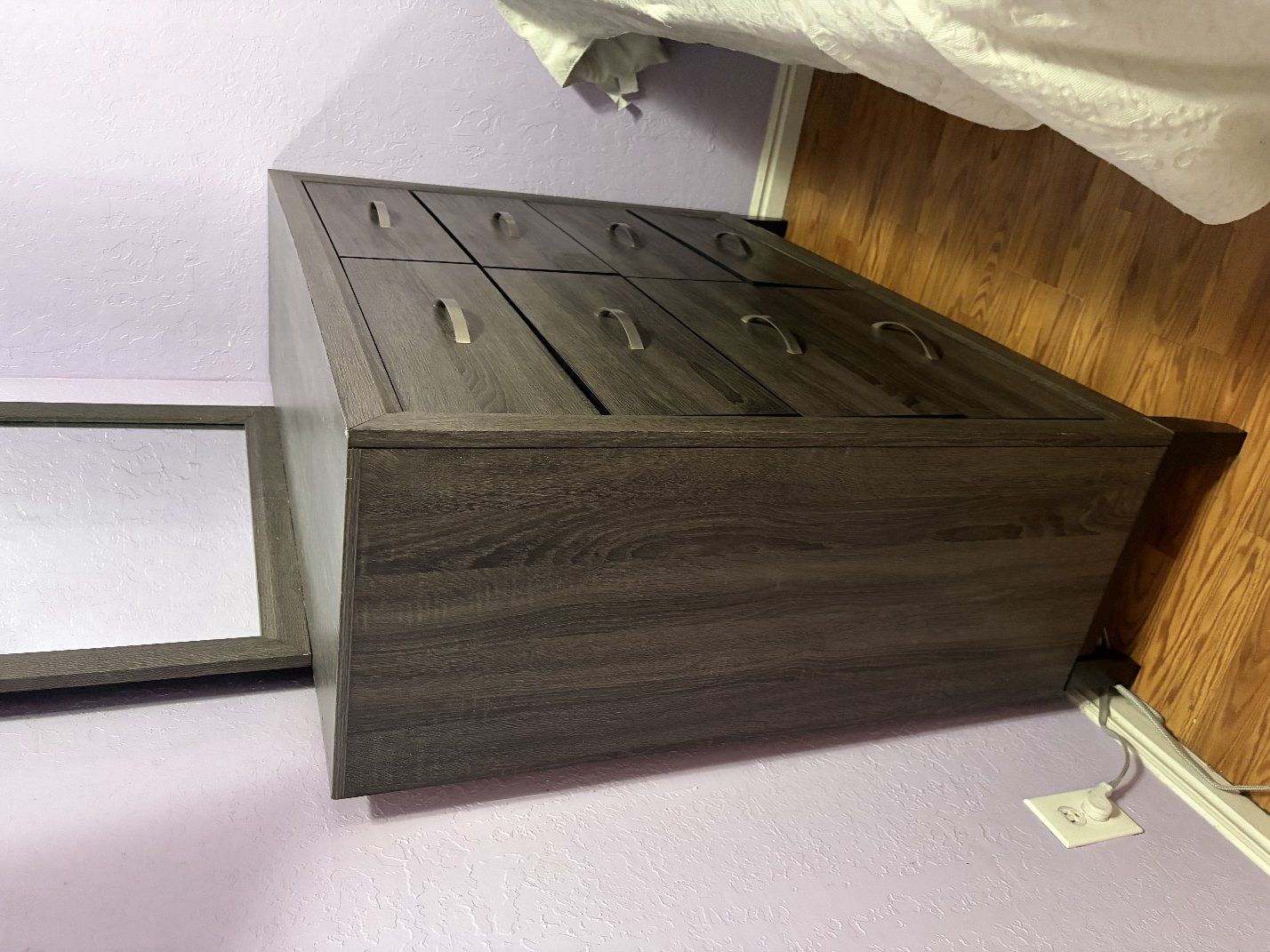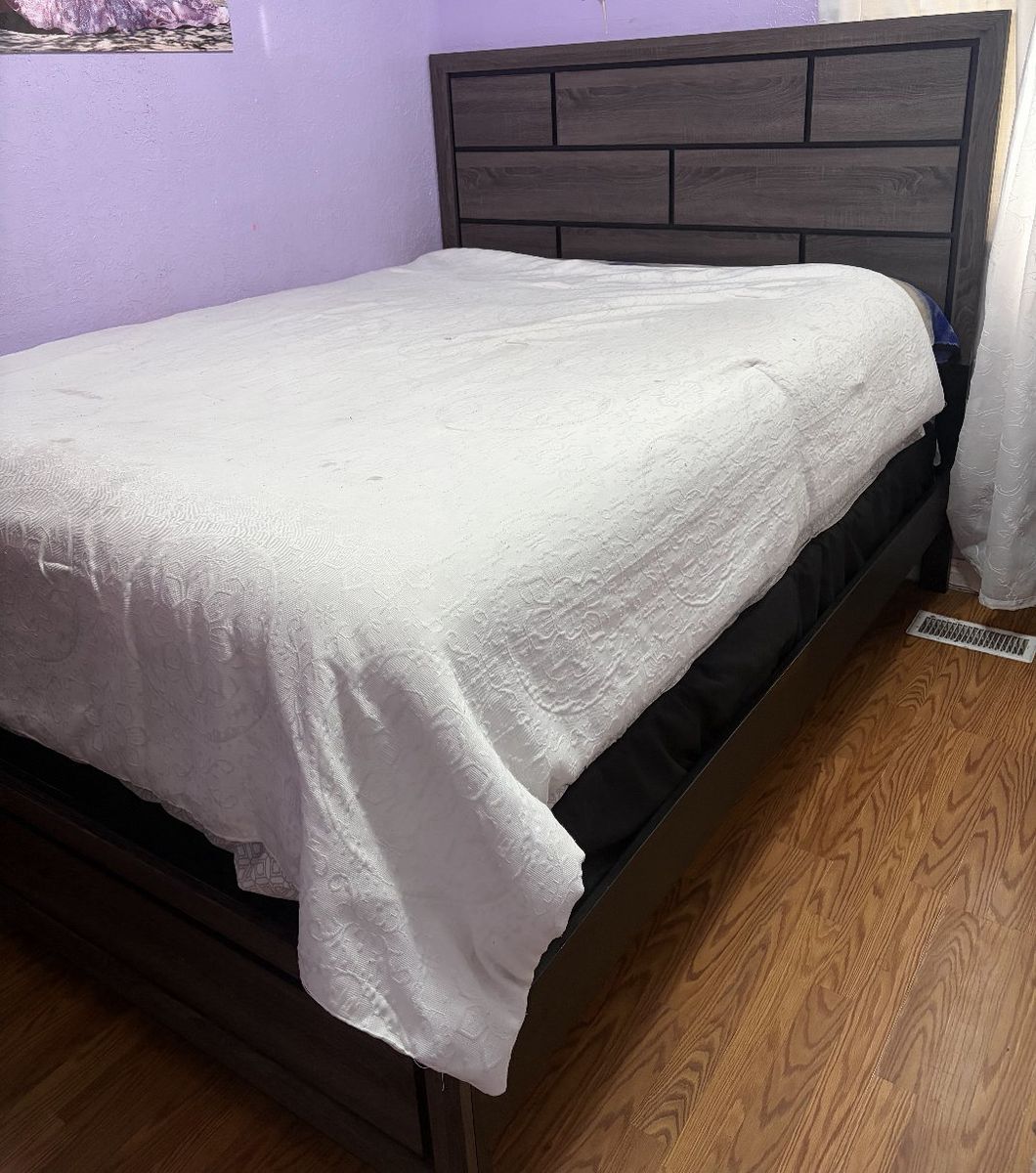 VenmoBeautiful 6 piece queen bedroom set includes the bed frame, box spring, mattress, nightstand, 8 drawer dresser, and the mirror. (If the post is up it means it's still available.)