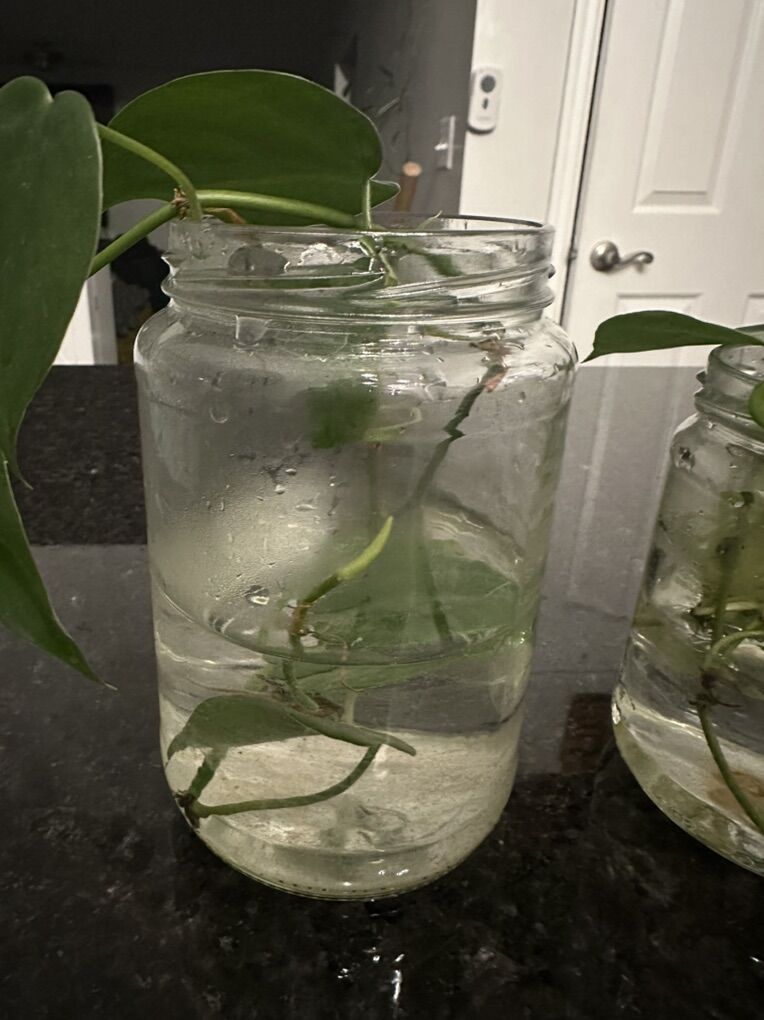 Comes with the jar they’re in. Each jar has two starts. The plants are about 6-8” long. Roots are nubs or about 1/2” long. Their roots aren’t as big and bold as my other ads but I started them the same time! They have roots though. Also. Feel free to tell me if the plant name is incorrect. Philo/pothos ?!