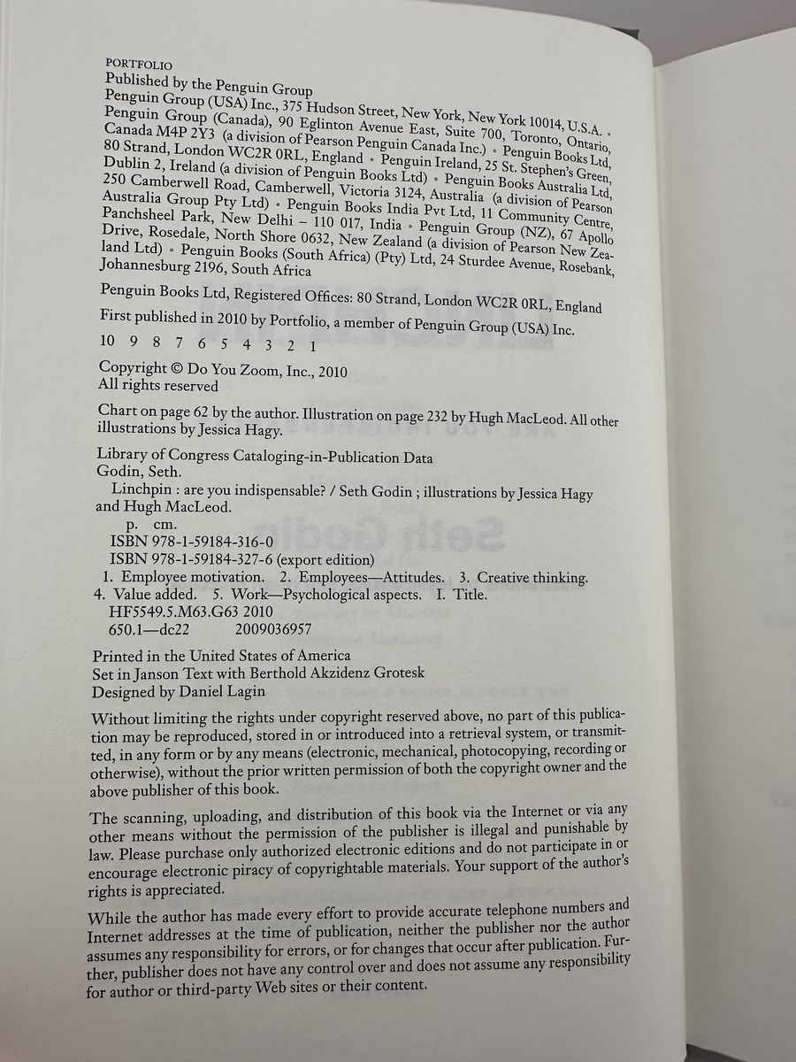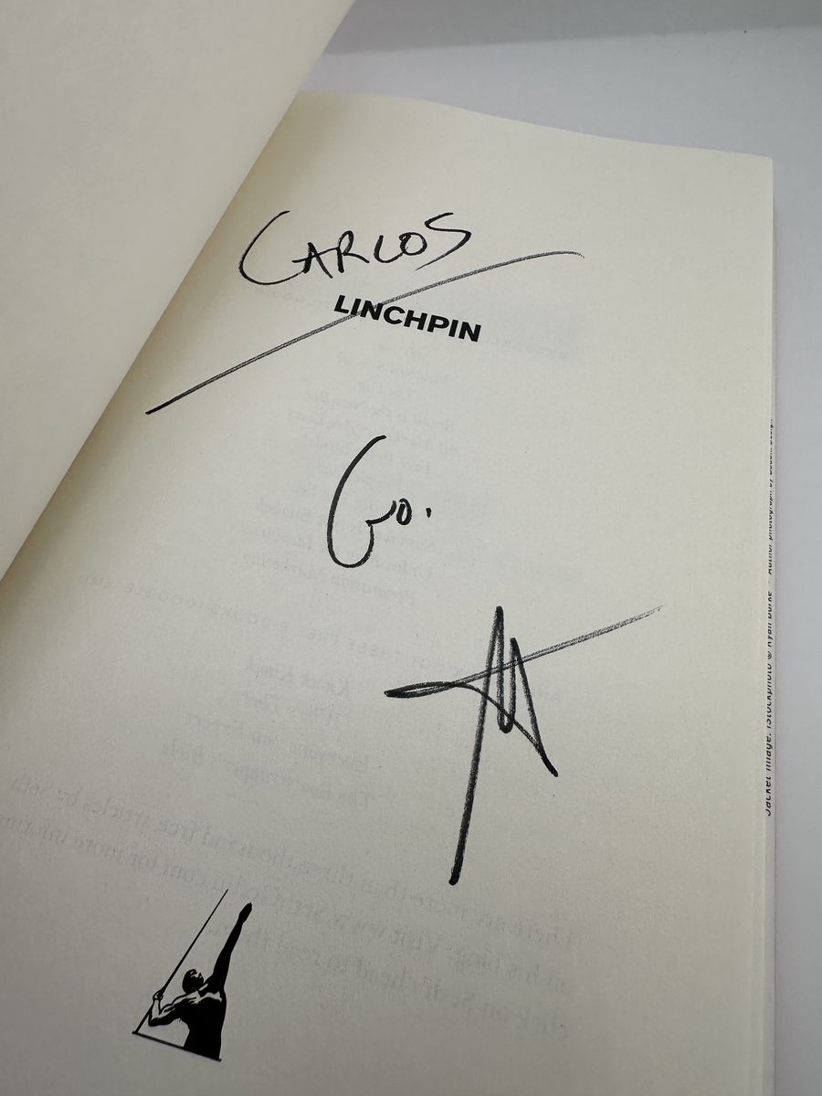 ApplePaySigned first edition hardcover of Linchpin: Are You Indispensable? by Seth Godin (2010) with original dust jacket. Inscribed and signed by the author. Excellent copy for collectors and business book enthusiasts.
