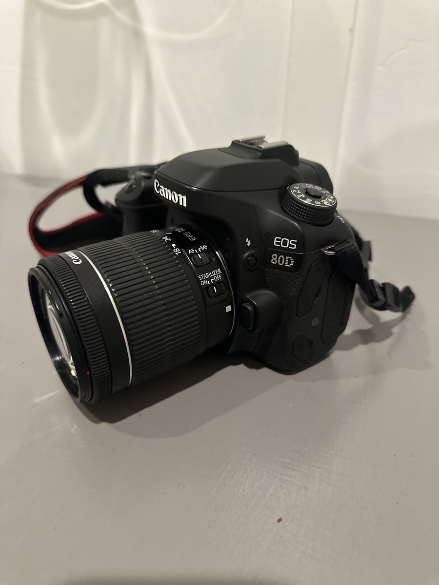 Selling my Canon EOS 80D DSLR with the 18–55mm f/3.5–5.6 IS kit lens.