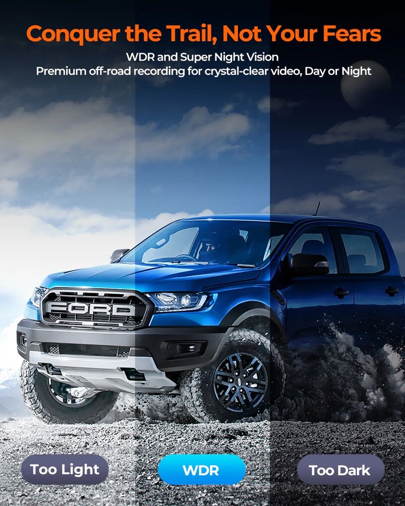 High-Quality 4K & 2.5K Recording Front camera captures 4K video (3840×2160P) with a starlight CMOS sensor, while the rear offers 2.5K (2560×1440P) with WDR and a 180° lens, covering 1.5x more with clear night vision, supporting up to 256GB storage.