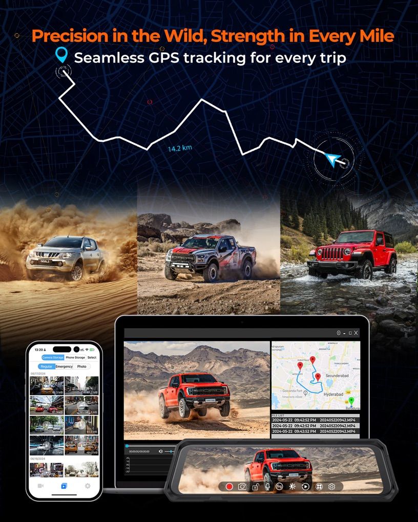 Precise GPS Route Tracking High-sensitivity GPS module with an external antenna embeds location and speed data into videos, reviewable via the app for safety.