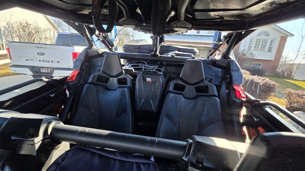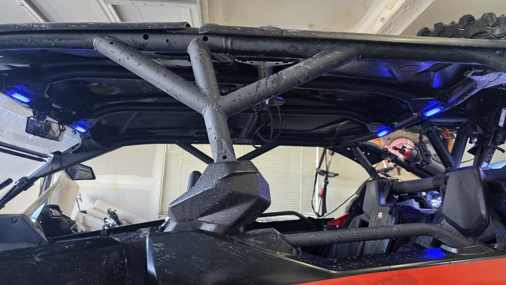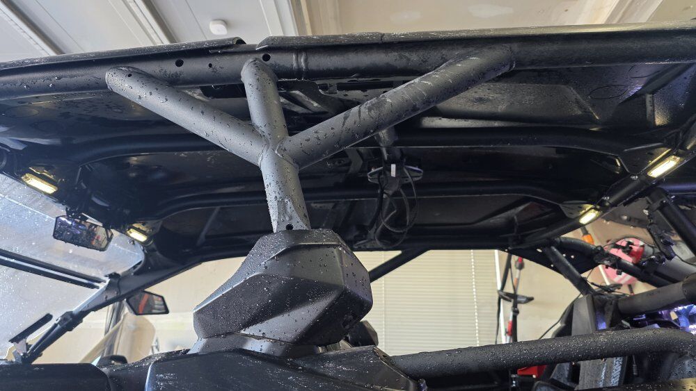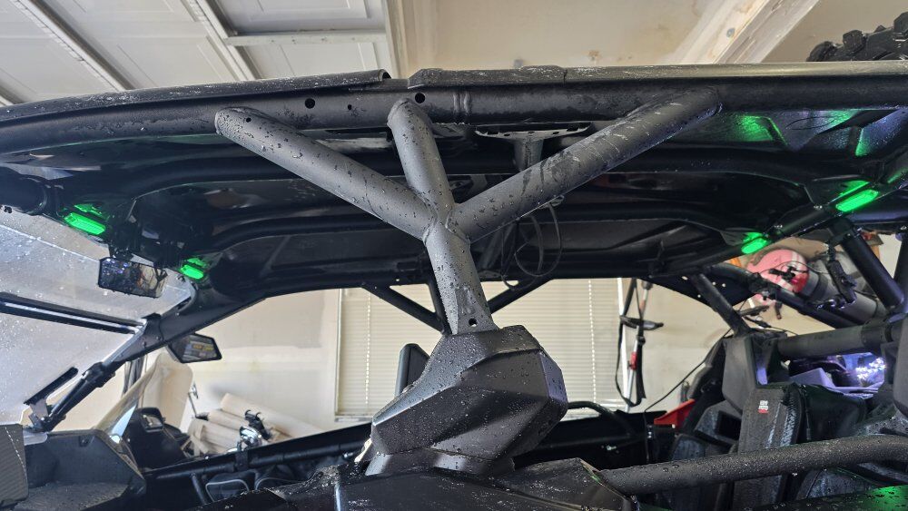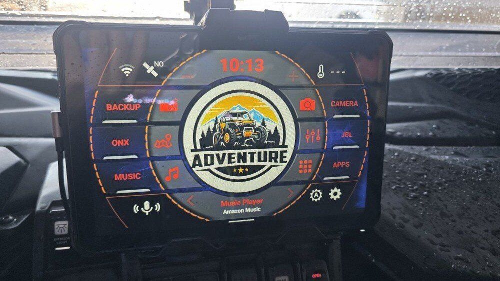 Upgrades Street legal Custom setup Shock Therapy shocks (no sag, huge ride upgrade) Valvetronic exhaust w/ electronic bypass System 6 beadlock rims Dual 3-ft LED whip lights with quick release 50” LED light bar Back up camera Door handles not straps Door struts Aftermarket LED grill Sweeping front turn signals Split flip-up windshield Rock lights + multi-color interior lights Lower doors & rock sliders Rear seat & bed storage Spare tire w/ rack + jack GPS tablet & mount