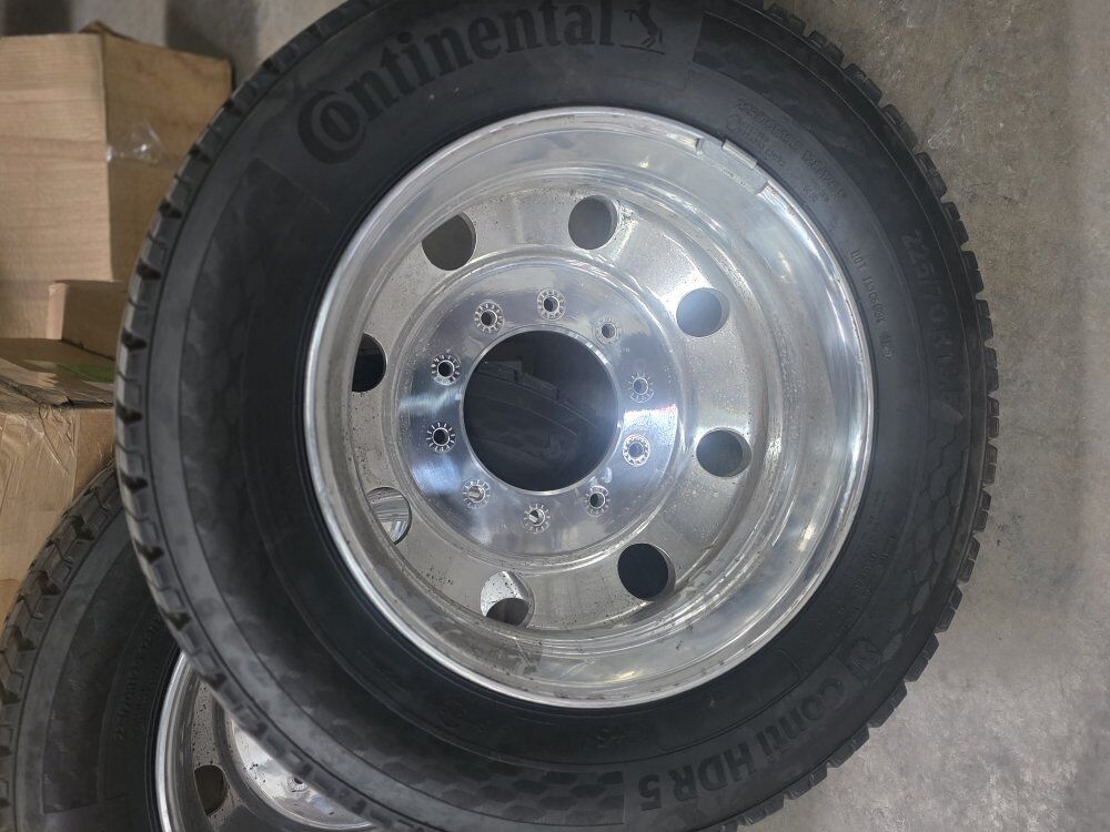 (all six rims and tires) these rims came off a 2026 Ford f-450 super duty dually. tires are continental HDR5 size 225/70 19.5 and bolt pattern is 10x225mm. these tires and rims have 150 miles. they are pretty brand new. send me a message for anymore info.