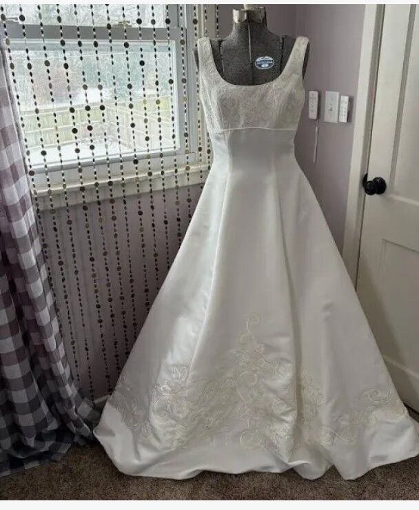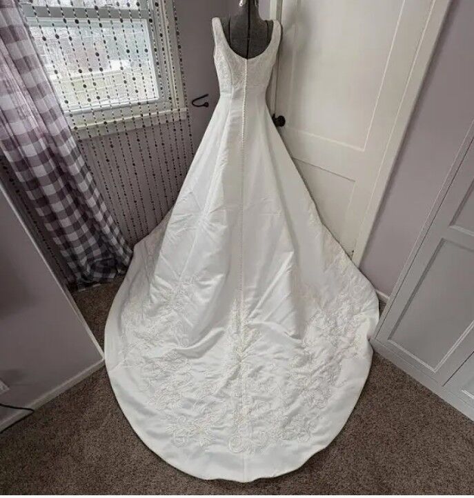 Gloria Vandirbuilt size 14 wedding dress. Cathedral Train buttons down back. No rips No stains not altered