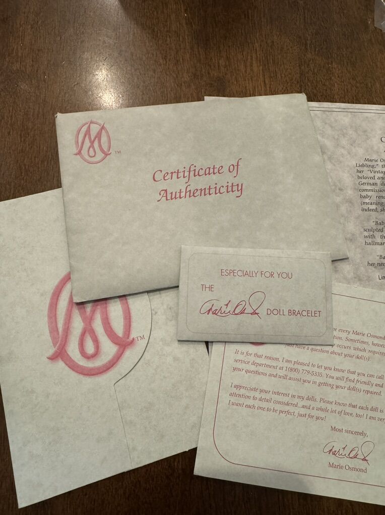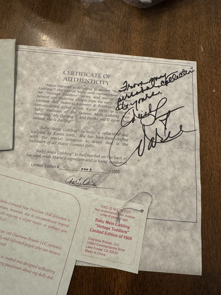 WHAT MAKES THIS SPECIAL: • Limited Edition #0003 out of only 1,500 ever made • Includes a hand-signed note from Marie Osmond herself • Certificate of Authenticity included • Original box included • 14 vintage toddler porcelain doll in beautiful condition