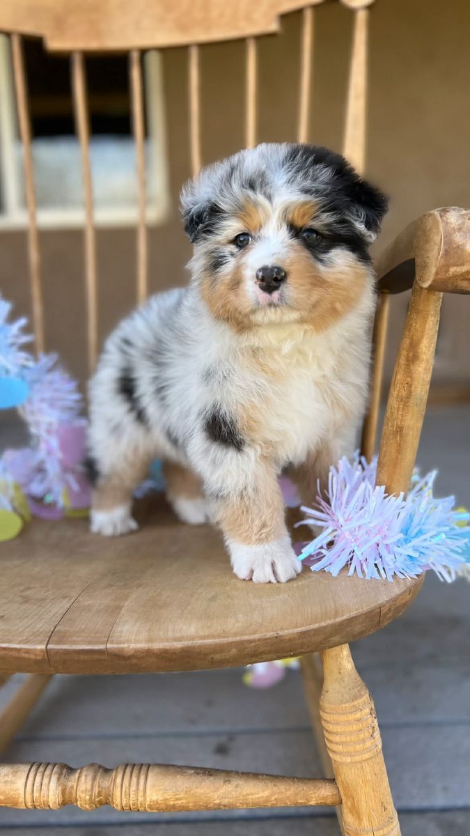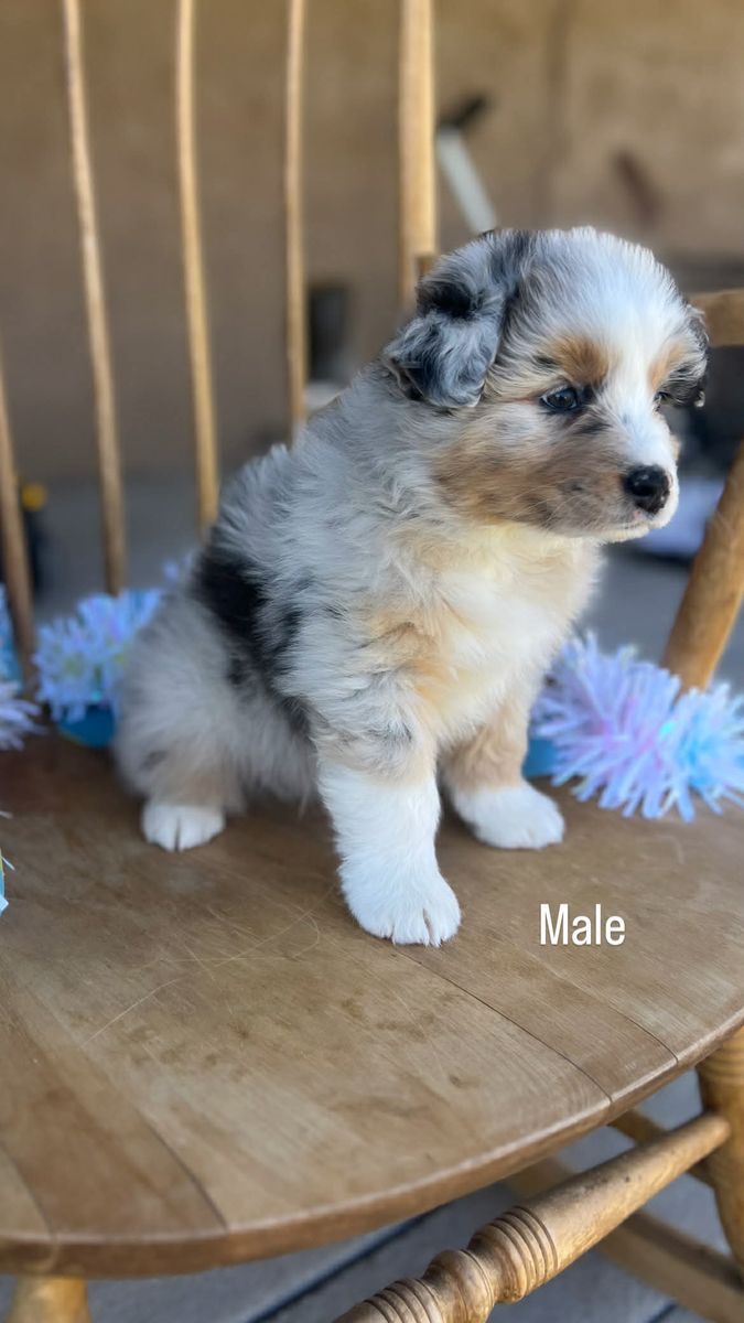 Cute aussie puppies! Merle males and Tri female. Ready to go Saturday 28th