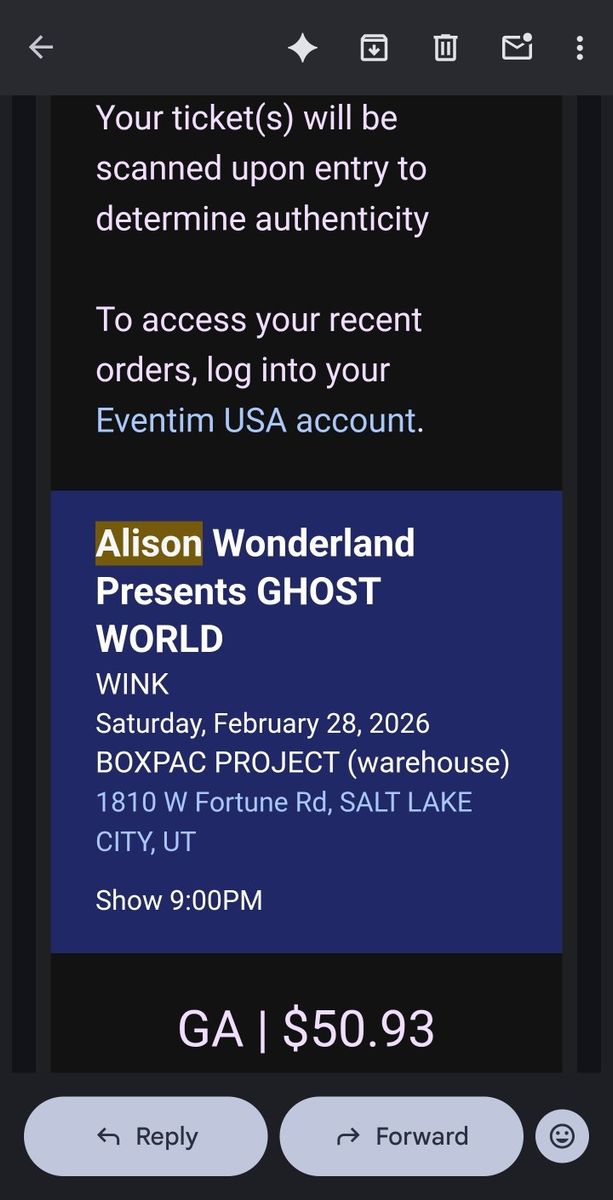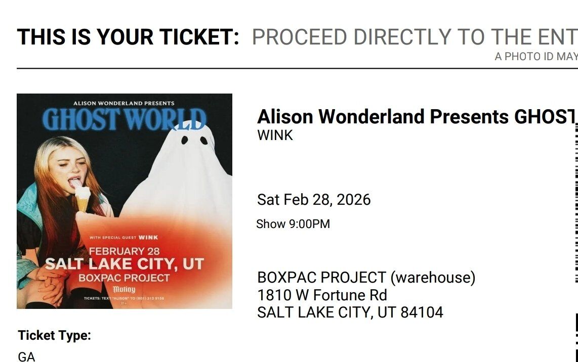 Alison Wonderland GHOST WORLD 4 x GA (@ $55.25)