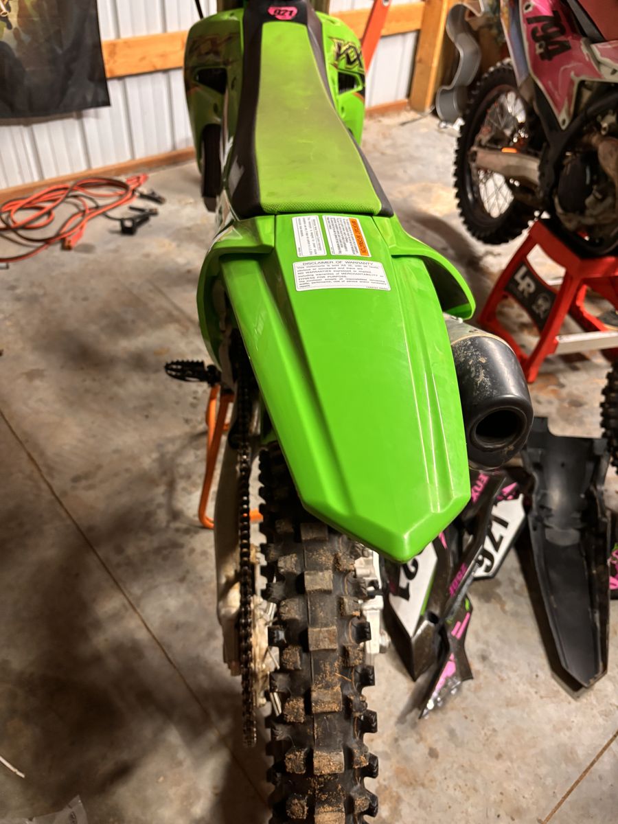 It has a brand new engine in it with not even 15 hours on it I have an extra stalk seat cover for it, some extra 450 and 250 plastics for it and a extra back tire. It runs great. Text if more questions.