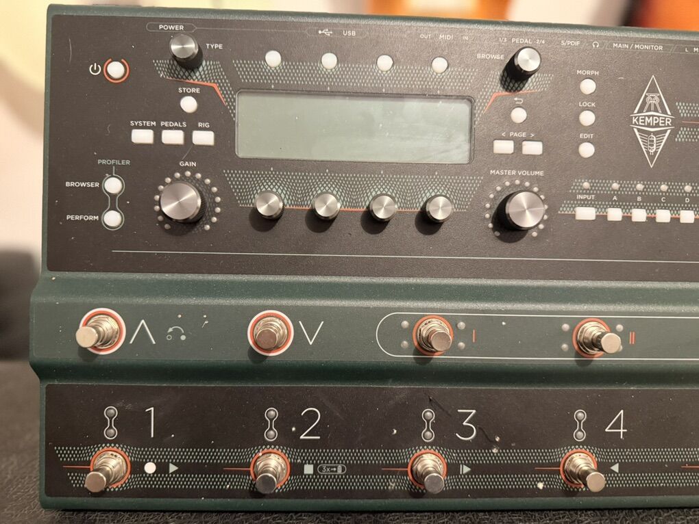 PayPalKemper Stage profiler/modeler in good working condition. Everything functions as it should (switches, knobs, display, I/O). Cosmetic wear from normal use—light scuffs/marks as shown in the photos.